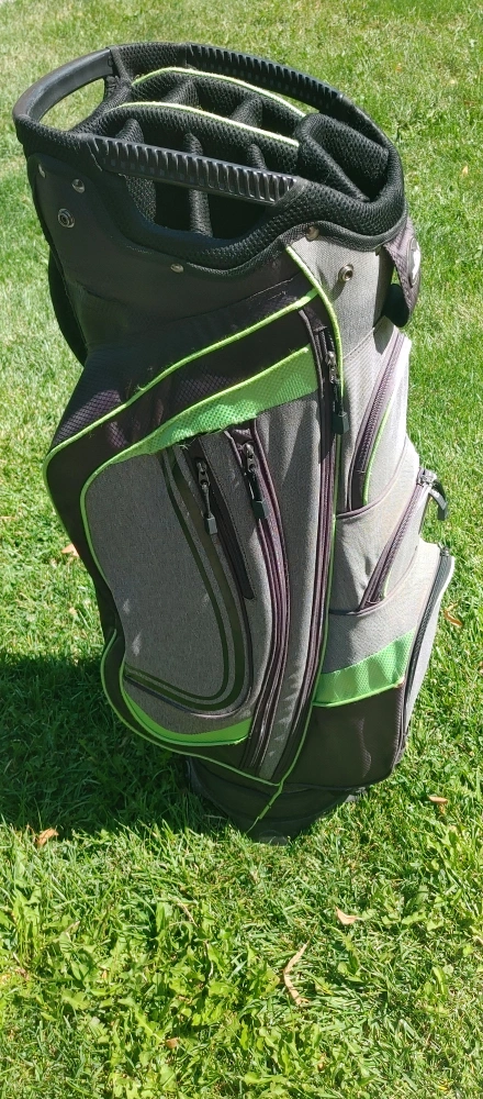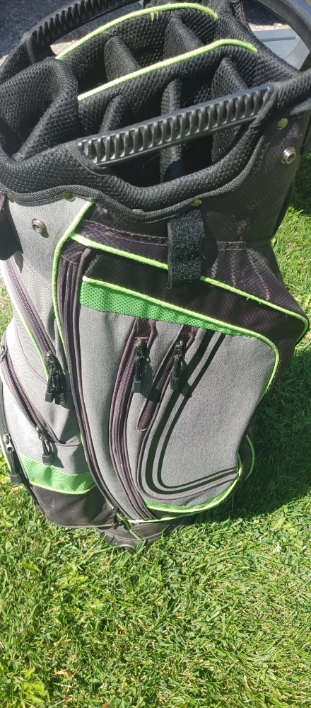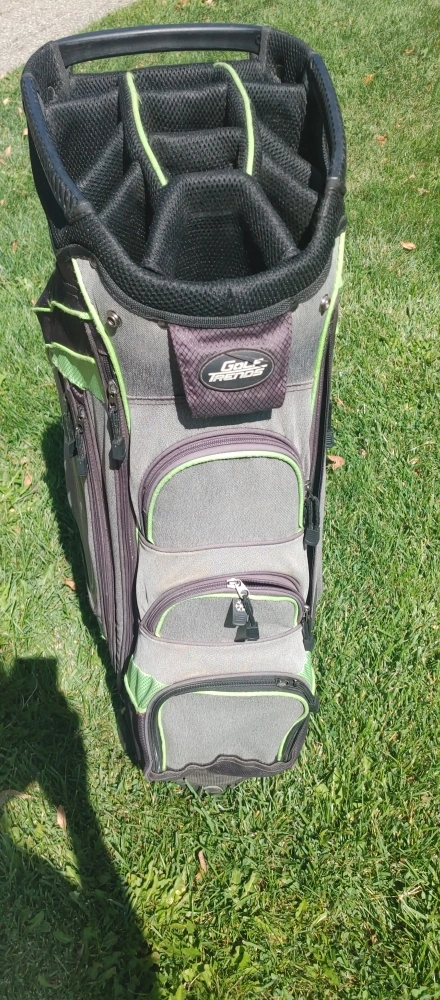 Selling a Golf Trend golf bag in great condition! It's a stylish grey colour with green accents. Perfect for carrying your clubs around the course. everything must go. candles dishes. etc. women clothes. new. insulated pants. n others. med. large.