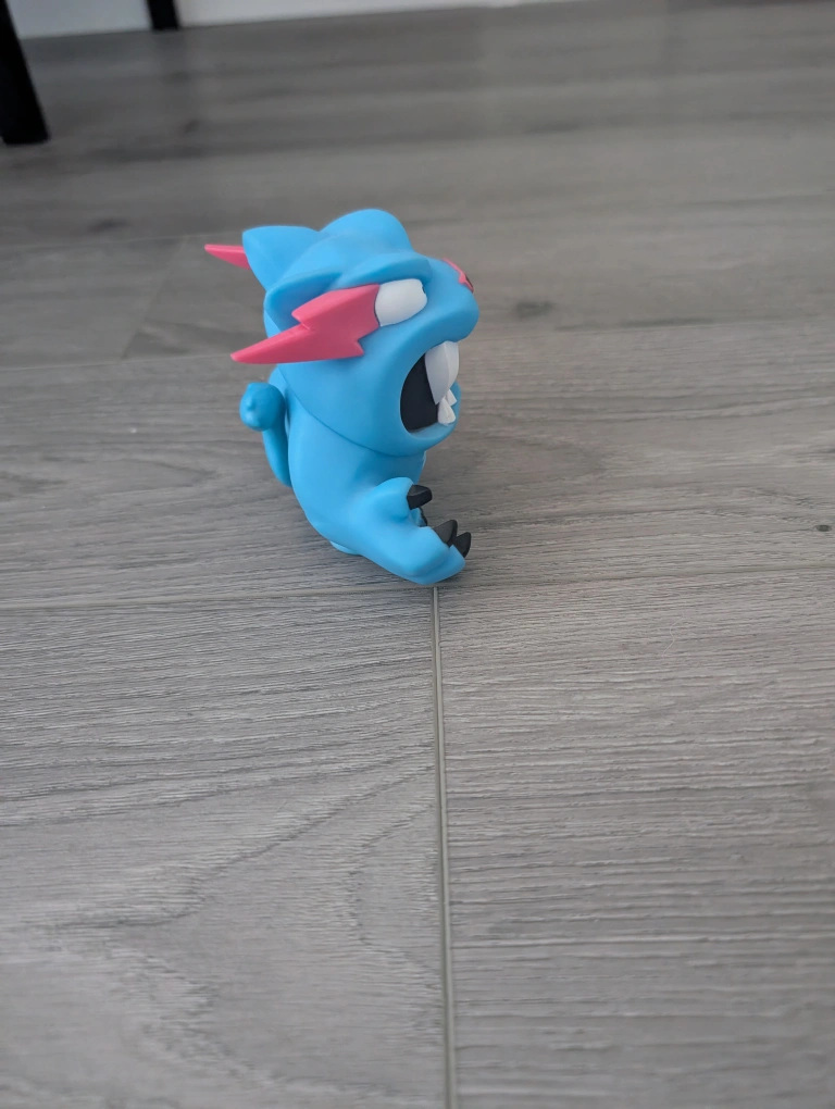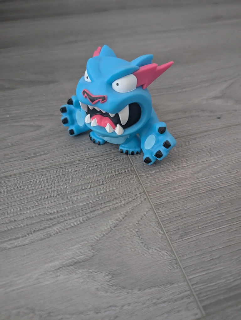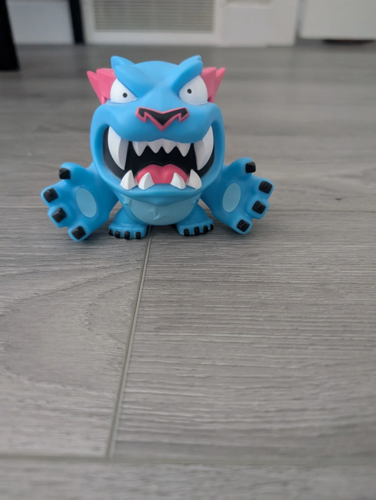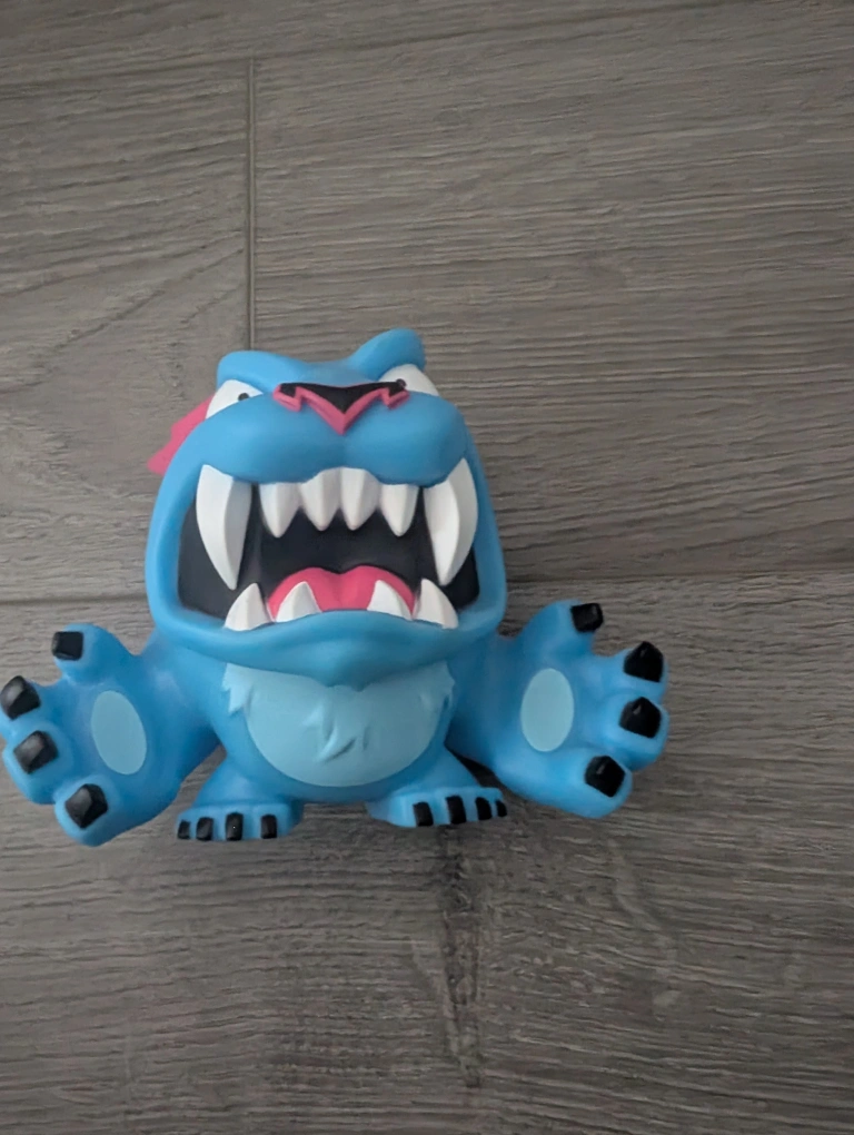 Here's a Mr Beast toy! It's blue with pink accents and has a lot of character