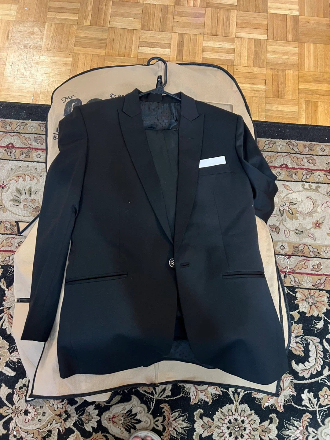 Selling a Mr. Boss men's wear blazer and coat suit. It comes in a garment bag for protection and easy transport. Perfect for any formal occasion or professional setting!