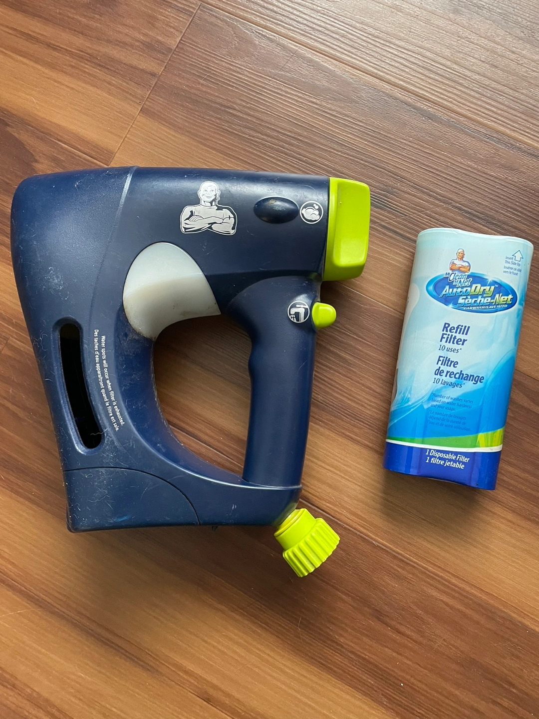 Mr. Clean AutoDry Soap Dispenser. Blue and green. Like new! Comes with refill filters. Attach to your garden hose for easy vehicle cleaning!
