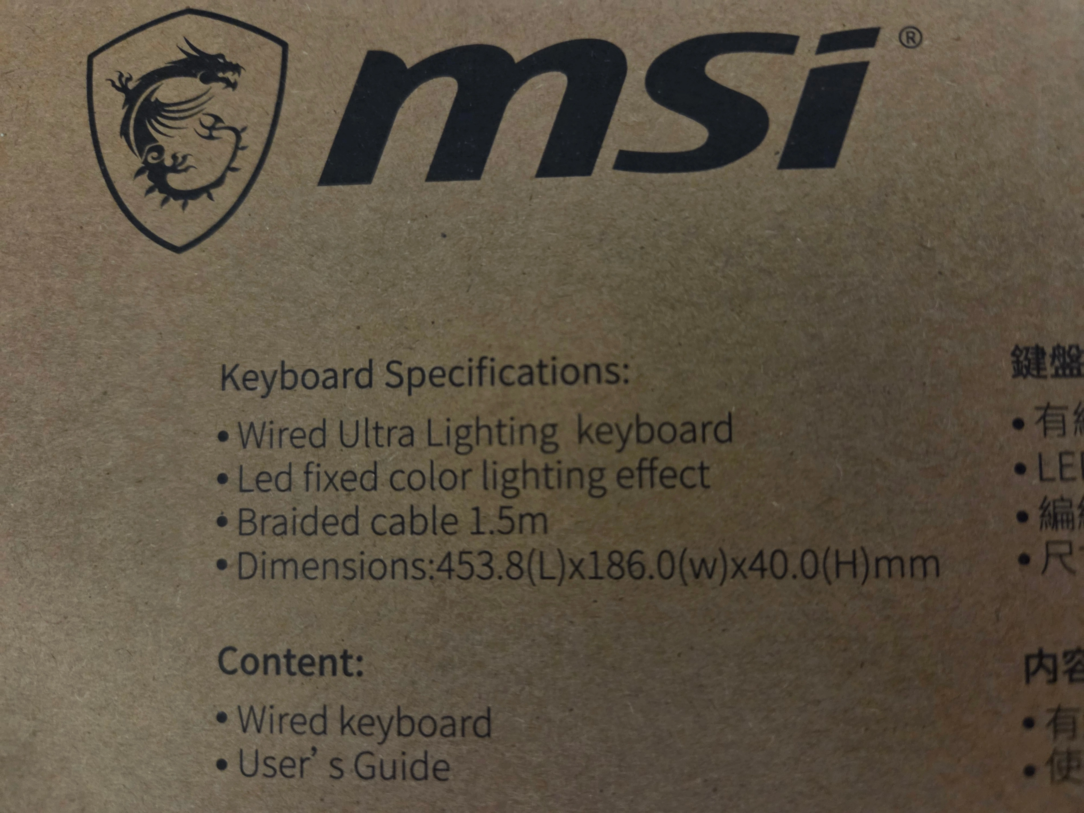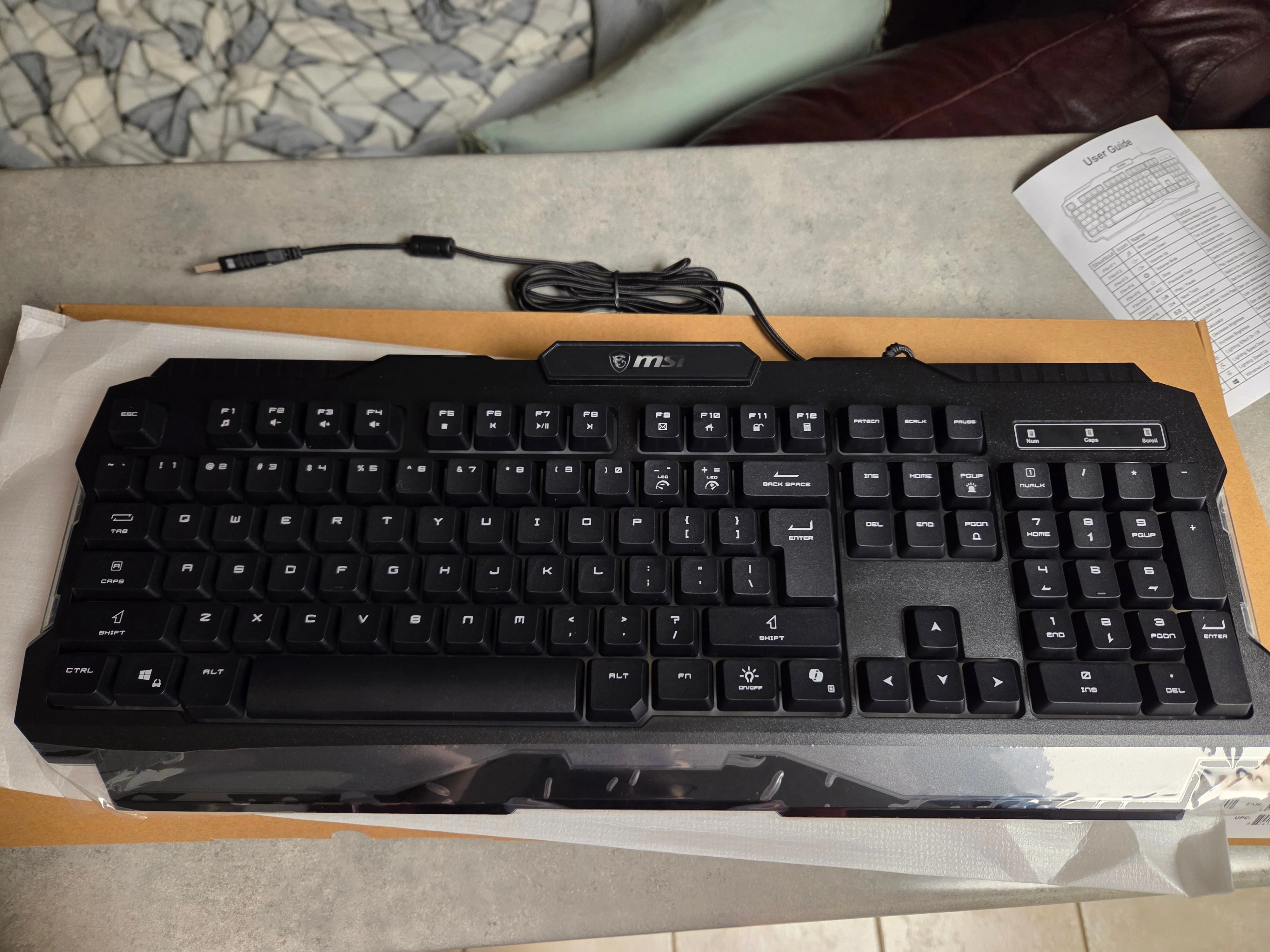 Got a keyboard and mouse combo when purchasing a PC. I already had a decent gaming keyboard, so I am selling the keyboard only. New and never used, but the box has been opened to take out the mouse and take pictures of the keyboard. Keyboard specifications: Dimensions in cm: 45.38(L) x 18.6(W) x 4 cm Wired Braided cable 1.5 meters long Ultralight LED fixed colour lighting effect