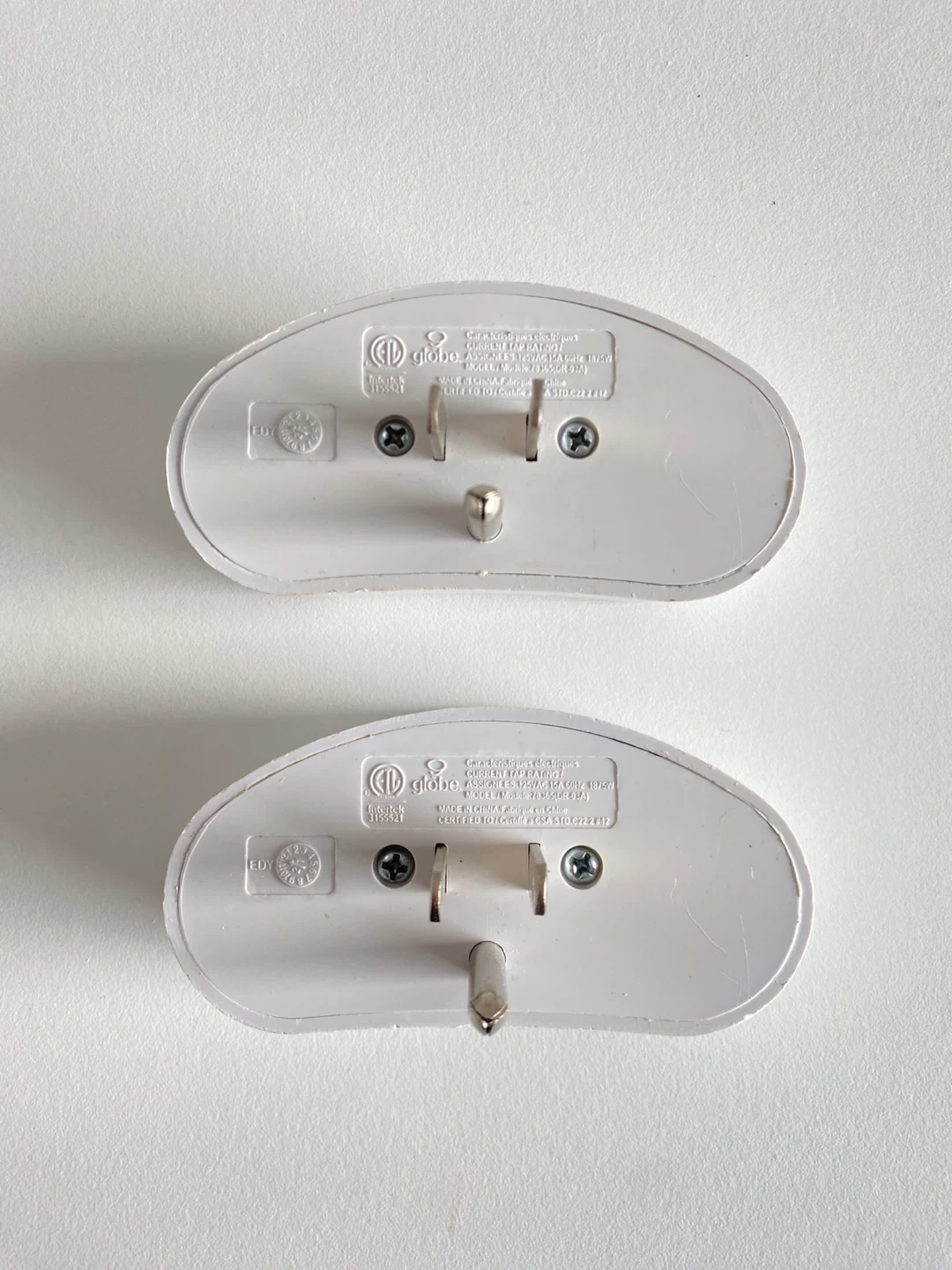 Here is a set of two multi outlet plugs, you can turn 2 plugs into 4, its cordless and fits on the wall directly so no need to worry about cords, easy to carry and really useful to travel with!