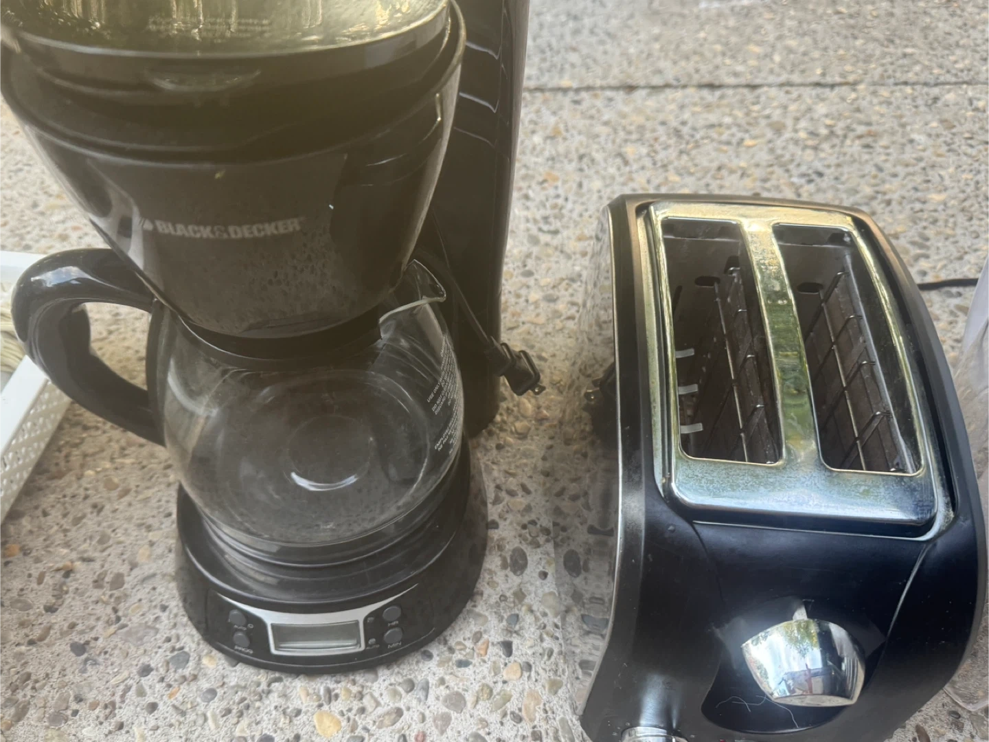 Selling a Magic Bullet and a Black+Decker coffee maker. Both in good used condition and ready for a new home! Comes with accessories shown in the photos.