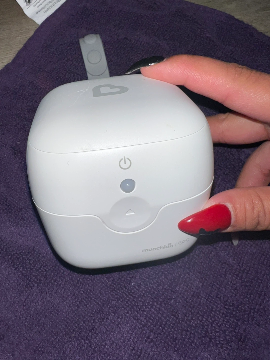 Selling a Munchkin 59s mini UV sterilizer box. It's in great condition and perfect for sanitizing small items like pacifiers or bottle nipples. It's white and has a compact design, making it easy to use and store! Unfortunately, did not come with a charging cord, never used.
