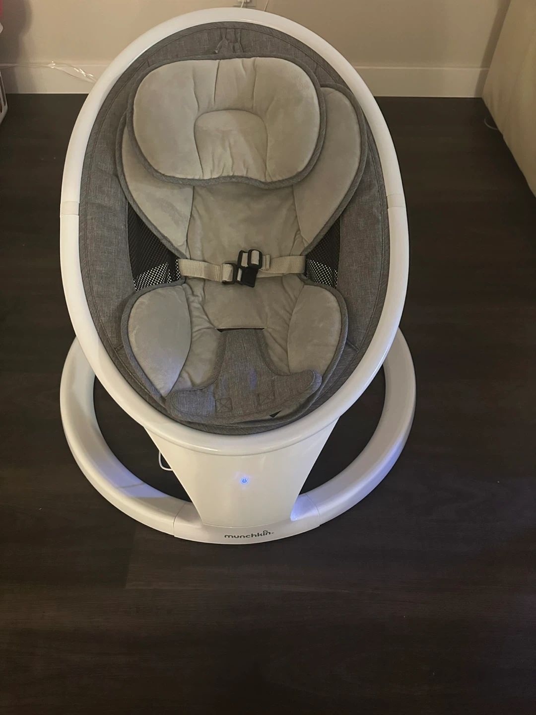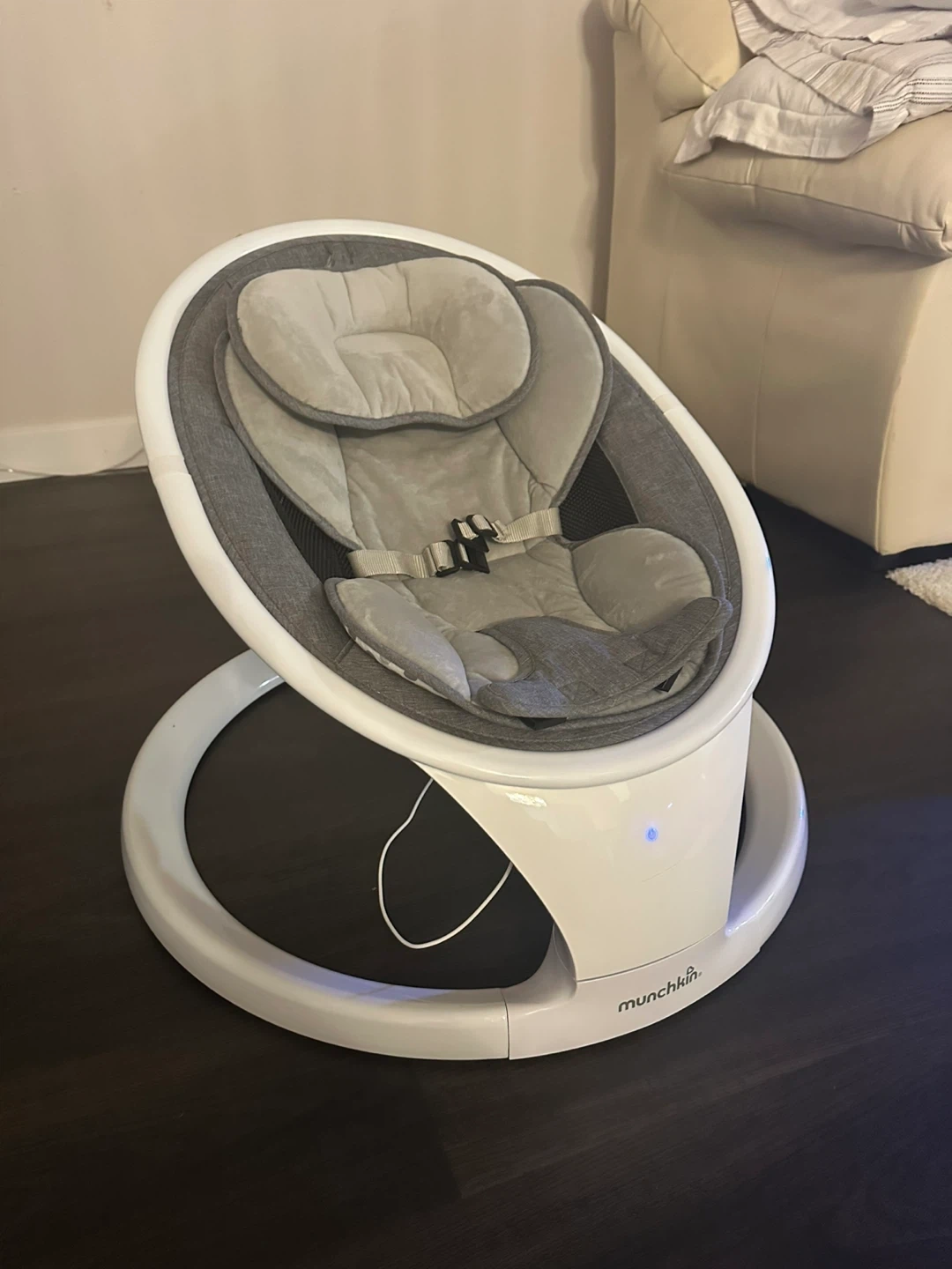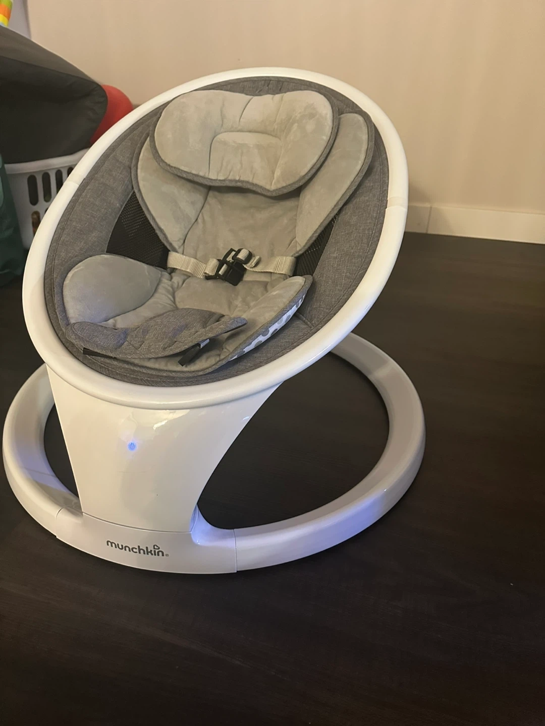 Selling a Munchkin baby swing! It's in great condition and rally used. This swing is perfect for soothing your little one with its gentle motion and comfortable design. It's lightweight and portable, making it easy to move around the house as needed. Perfect for infants!
