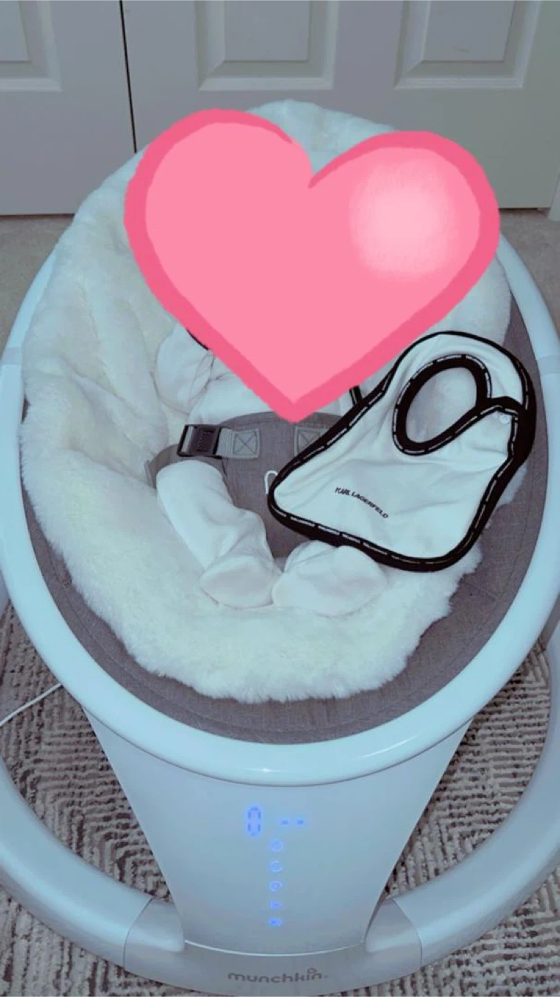 Selling a Munchkin baby swing. It features a soft, plush seat.