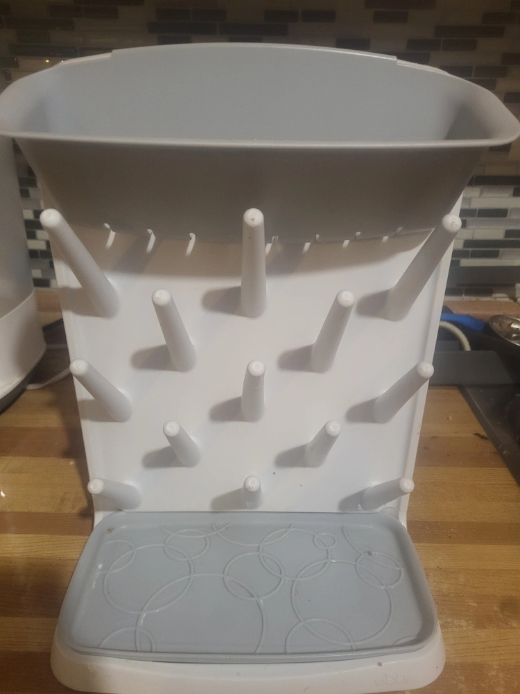 Selling a Munchkin Sprout Drying Rack in white. It's perfect for drying bottles and accessories after washing. It has a slim profile to fit nicely on your counter, and it's in great condition!