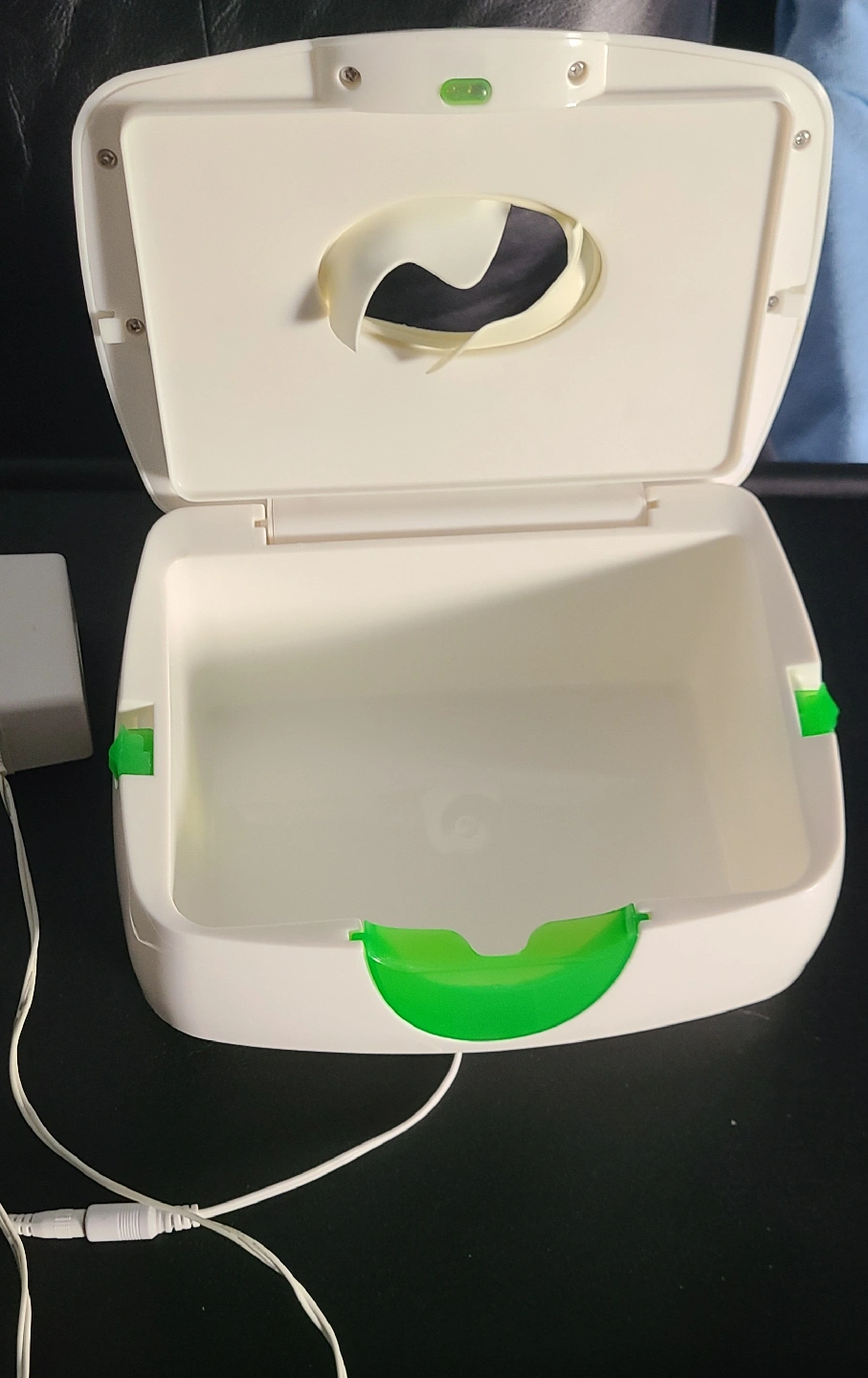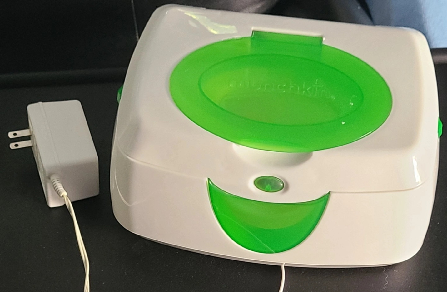 Keep your baby wipes nice and warm with this Munchkin Warm Glow Wipe Warmer! It's in great condition and comes with the original power adapter. The soft glow nightlight is a nice touch for those late-night changes.