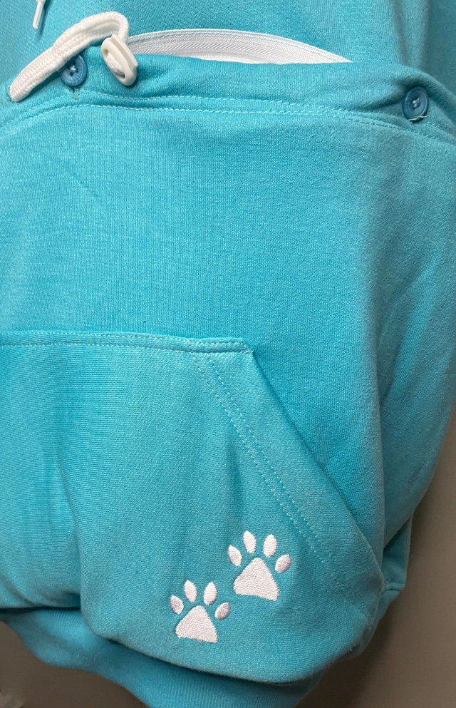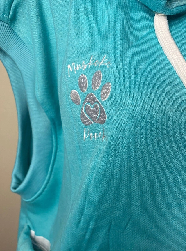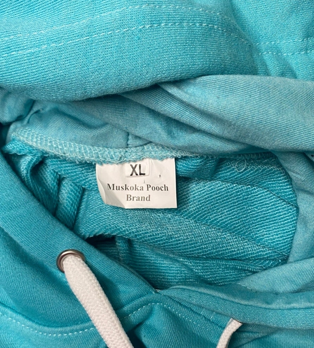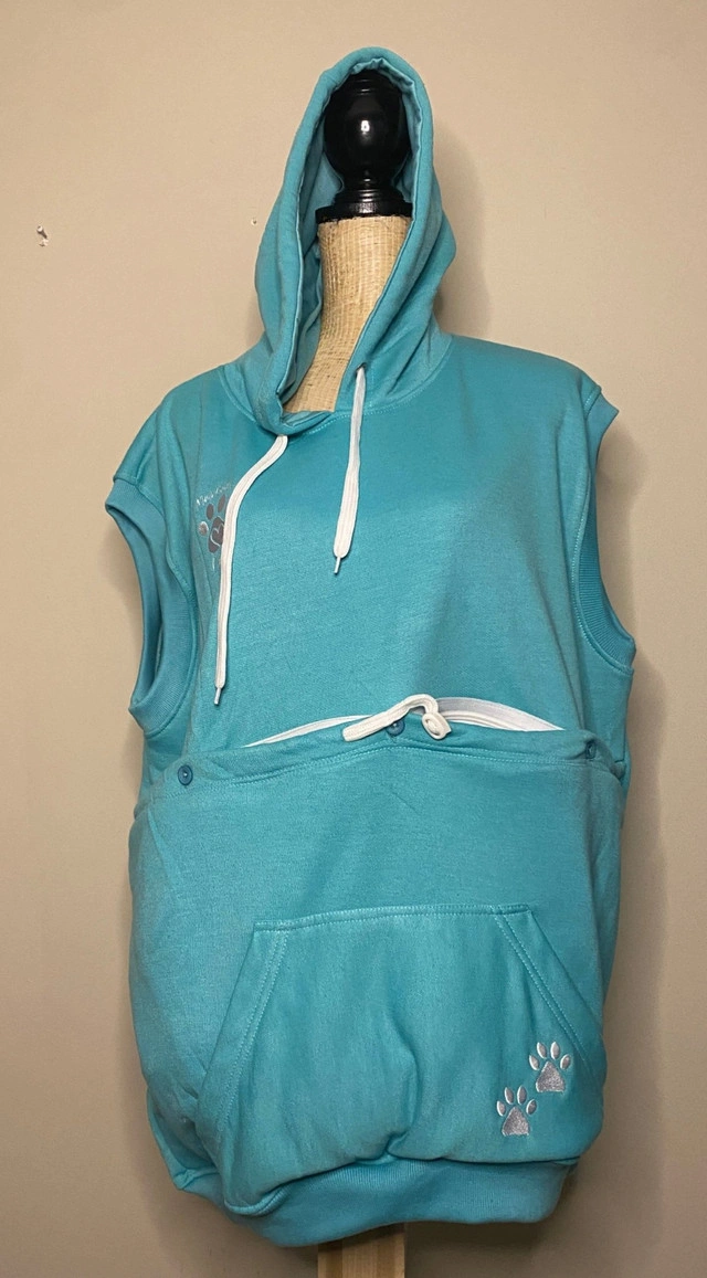 Carry your pet around like a kangaroo carries her joey and travel in style with your furry friend using the Muskoka Pooch Dog Carrier Sleeveless Hoodie. Designed for comfort and convenience, this innovative hoodie features a built in secure pouch to carry your small dog or pet. Made with soft fleece, it ensures a comfortable fit for you and your pooch, kitty or ferret. Perfect for walks, outdoor adventures, or lounging in style, this hoodie is as functional as it is fashionable. Take your pet everywhere in comfort and style. This is a size adult XL sleeveless pet pouch hoodie that is in excellent condition with no rips, stains or smell or pet hair and is clean throughout. For measurements, please see the attached guide located within the pictures of this listing. Local pickup is in Etobicoke near Islington and The Westway.
