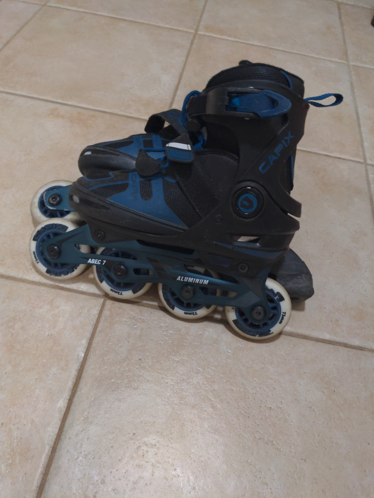 Selling a pair of Capix inline skates in black and blue. These skates are in good condition and ready for some fun! Adjustable sizes 1-4. Can throw in a set of xxs pads for free (not super good condition).