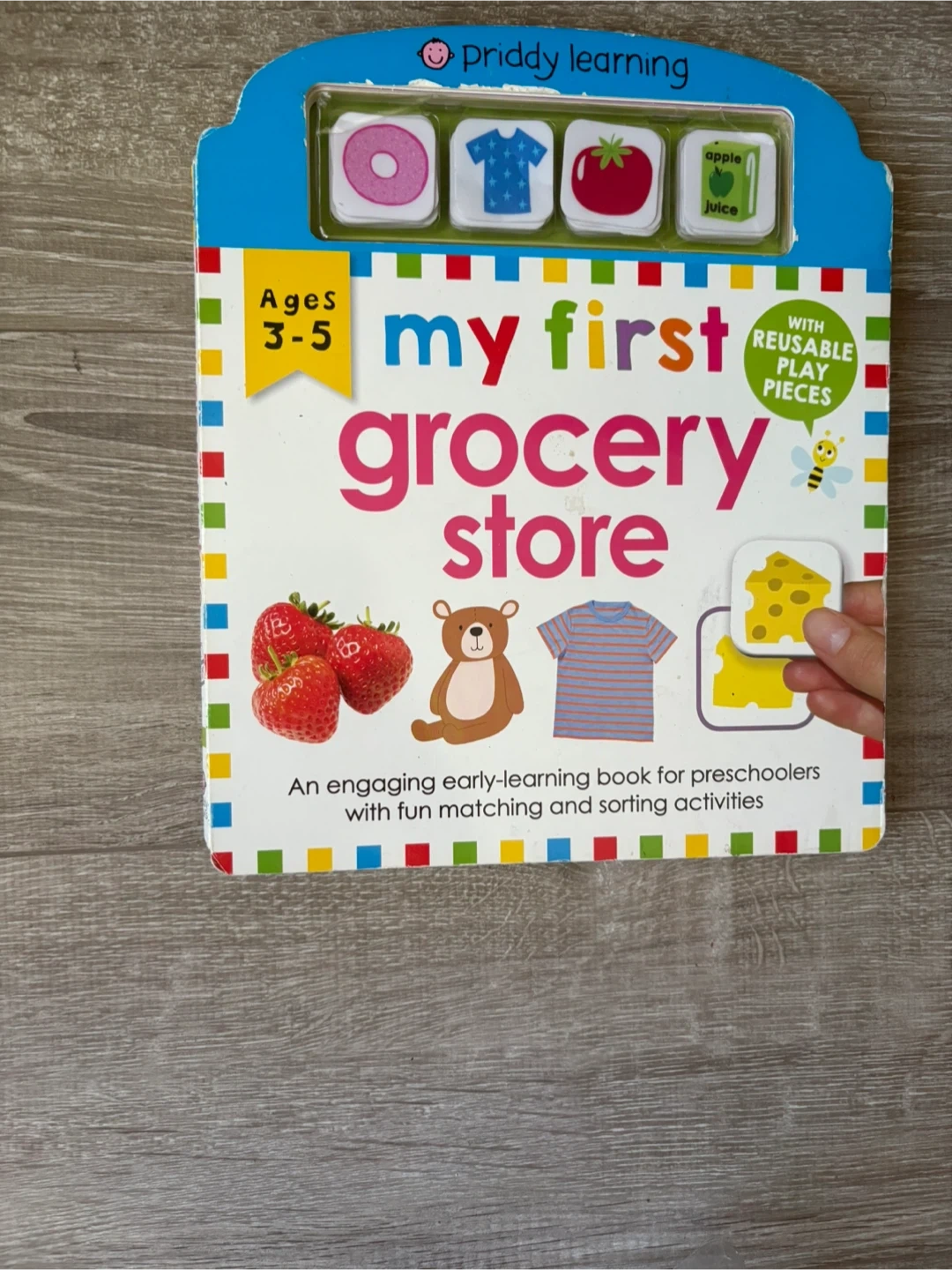 I'm selling a gently used copy of "My First Grocery Store" by Priddy Learning! It's an engaging early-learning book perfect for preschoolers. Includes reusable play pieces for fun matching and sorting activities.
