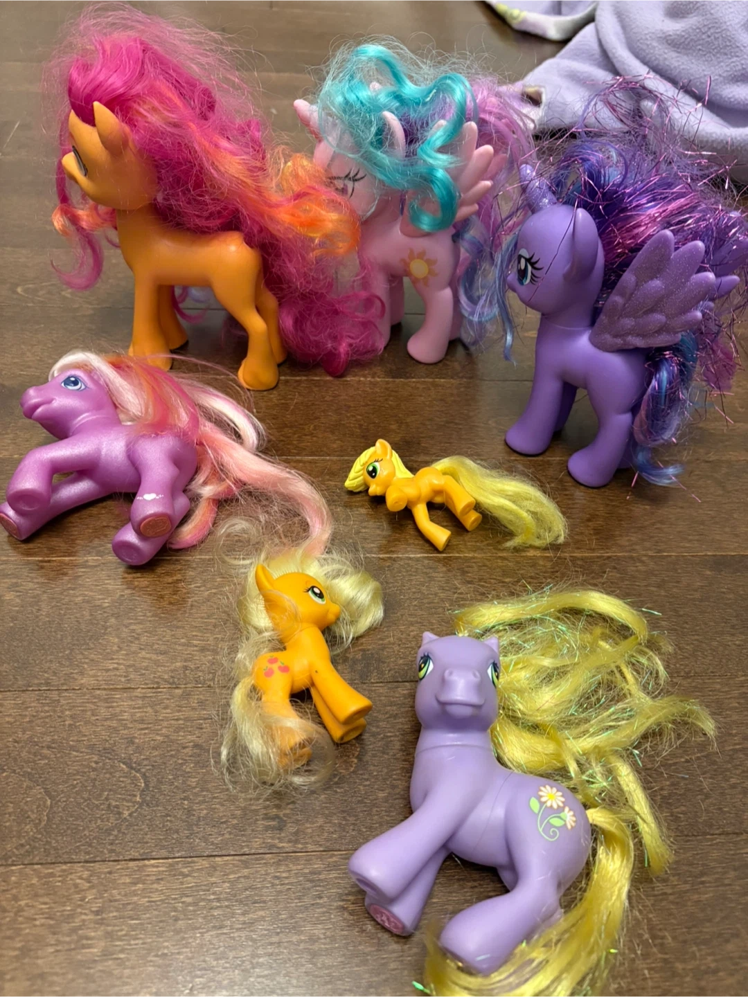 Selling a lot of 7 My Little Pony figures. They're in good condition and ready for a new home! Lots of fun colours and hairstyles