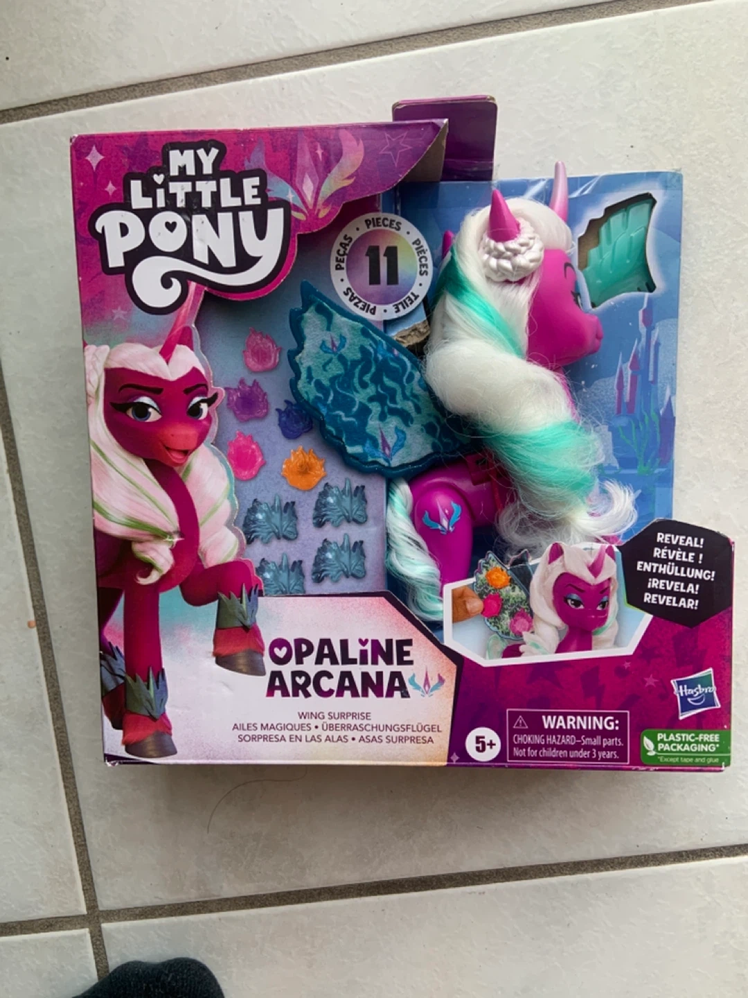 Selling a My Little Pony Opaline Arcana Wing Surprise doll! It comes with 11 pieces and is suitable for ages 5+. The packaging is plastic-free, except for the tape and glue.