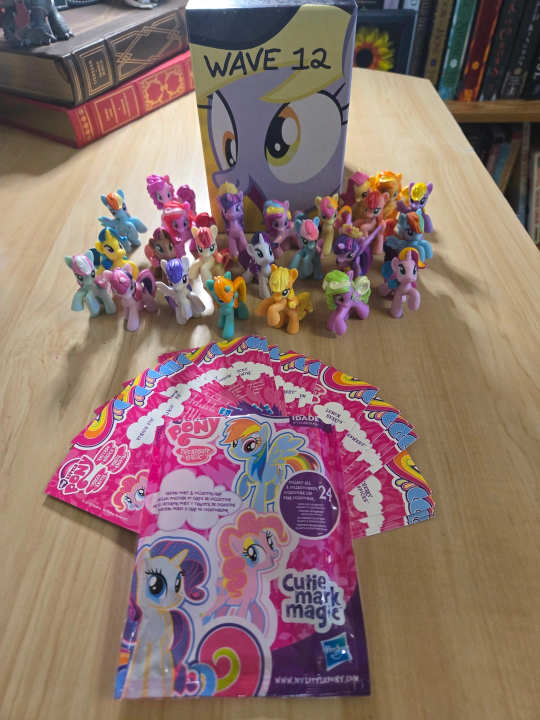 My Little Pony: Wave 12 Ponies with Cards (complete) The complete wave 12 MLP ponies with their collector cards (24 total). Each pony, depending on their position, are about 1-2 inches tall, so please consider this if you are planning on giving these to children. The cards correspond with the ponies are included, though due to the nature of blind bag packaging, the cards are in decent but not perfect condition. With this wave, I've included the MLP box with the wave written on it that I used to store them. Check out my profile for more MLP waves available for sale. I will not separate a single pony out of a wave due to the nature of the collection. I have no problem negotiating price if you want to buy more than one wave. Let me know if you would like more information or photos and I will get back to you as soon as I can.