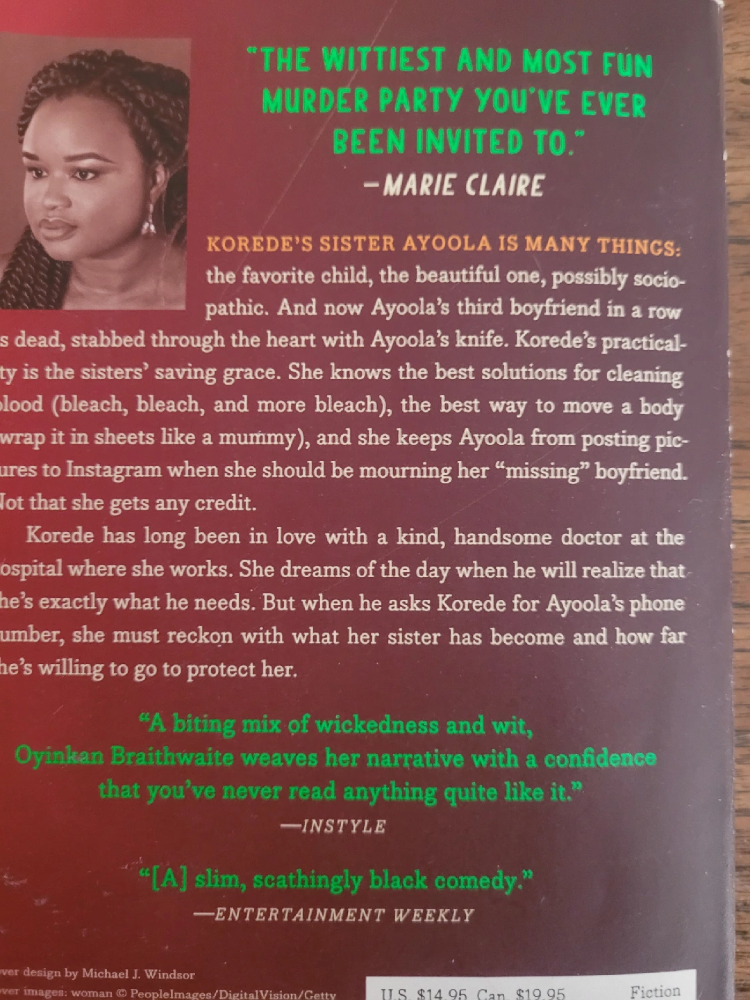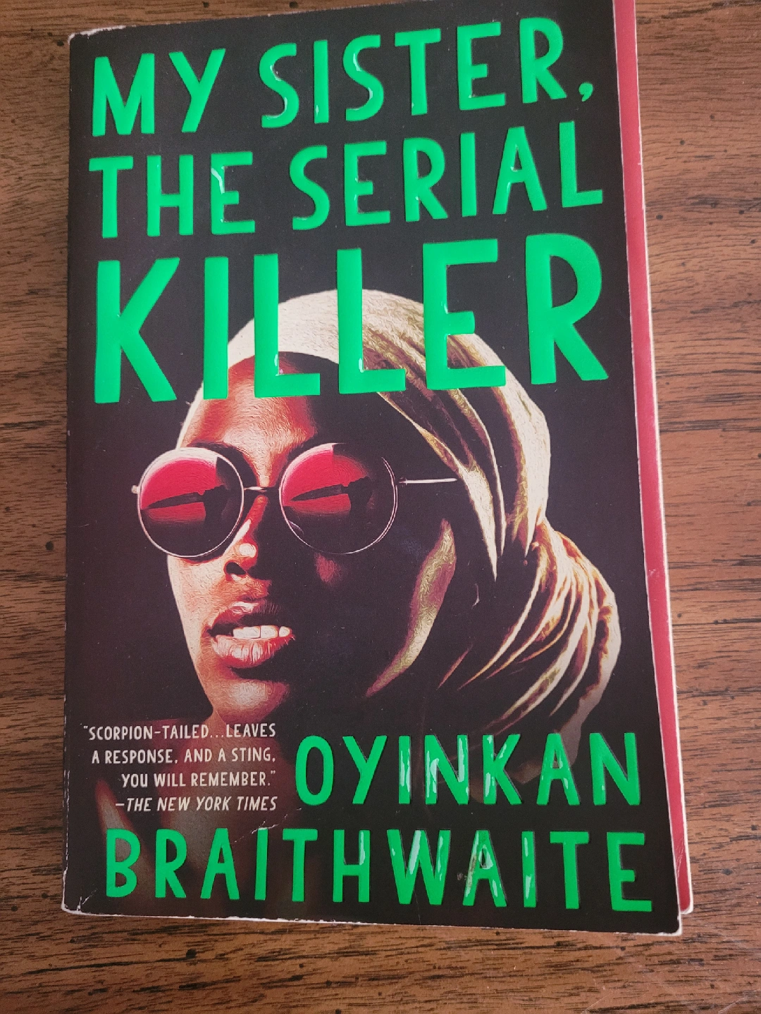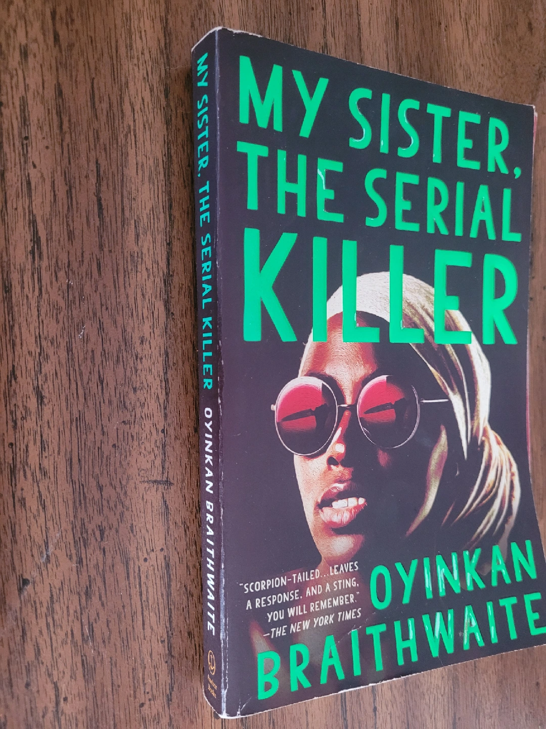 Selling a copy of "My Sister, the Serial Killer" by Oyinkan Braithwaite! It's a captivating read with a mix of wickedness and wit. Perfect for anyone who enjoys a slim, scathingly black comedy.