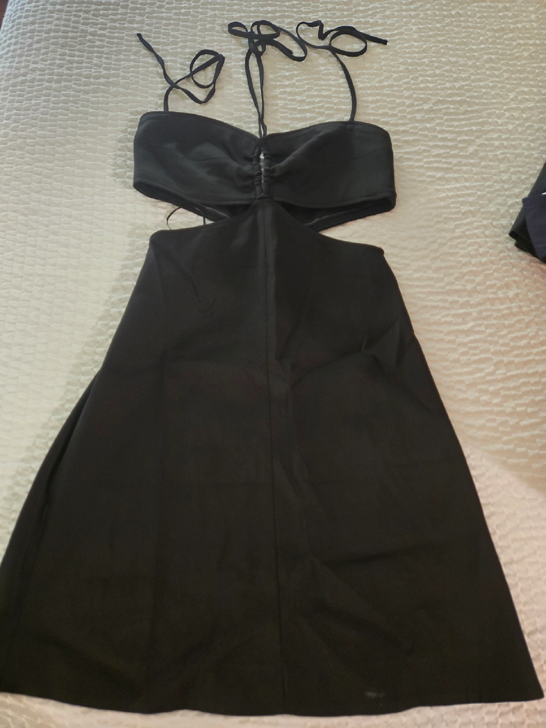 Selling a cute black cutout dress from Mya! It's a size small and in great condition. The tag shows it originally retailed for $99.99. It's a super stylish piece, perfect for a night out