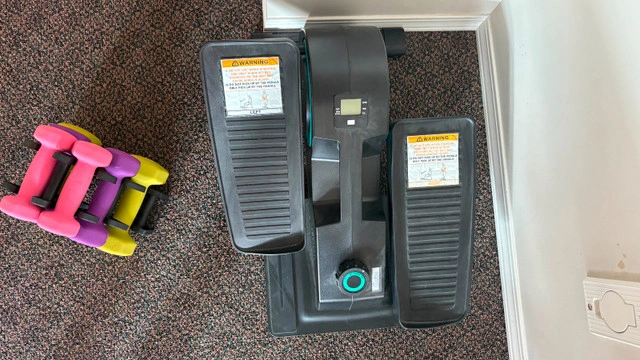 Upgrade your home or office fitness with the Mycubii compact under-desk elliptical! Barely used, in excellent condition. Whisper-quiet, fits perfectly under any desk, and features 8 resistance levels plus a digital display to track your calories, strides, distance, and time. Great for staying active while working or watching TV. Weights are included.