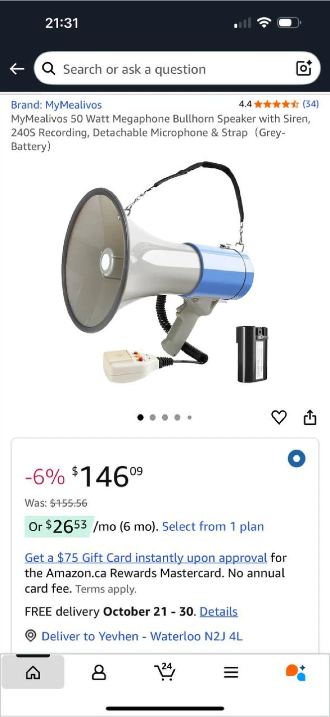๐ฃ MyMealivos 50W Megaphone Bullhorn Speaker with Siren & Mic ๐ ๐ฐ Price: $100 ๐ฆ Condition: Brand new, sealed set ๐ง Details: Powerful MyMealivos 50W rechargeable megaphone with detachable microphone, siren mode, and record/playback function (240 sec). Ideal for sports, schools, events, or emergency use. โ Rechargeable battery included (6โ10 hours runtime) โ Can also use 8รC batteries (not included) โ Adjustable volume + siren โ Strap included for easy carrying โ Size: 38ร22ร12 cm โ Range up to 1200 yards ๐ค Model: MyMealivos Grey-Battery ๐ Charging time: 4โ5 hours ๐ Pickup: Waterloo, ON ๐ Check my other listings for more electronics & tools!