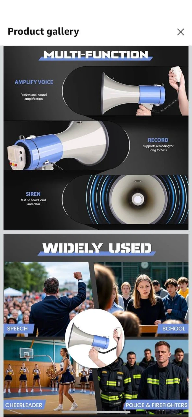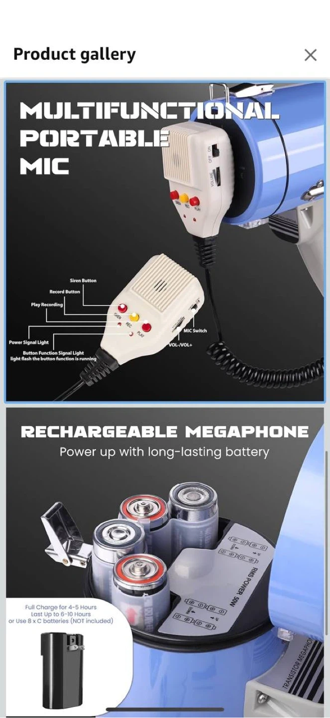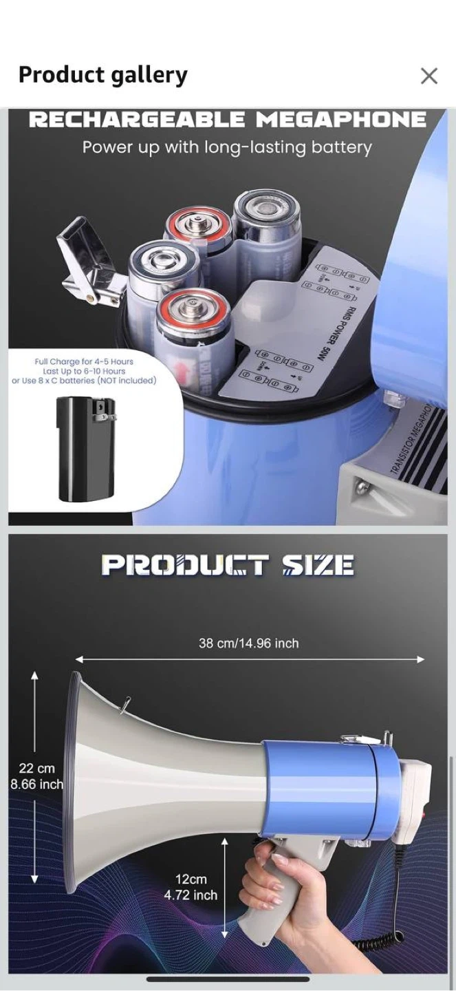 Show allMyMealivos 50W Megaphone Bullhorn Speaker with Siren & Mic