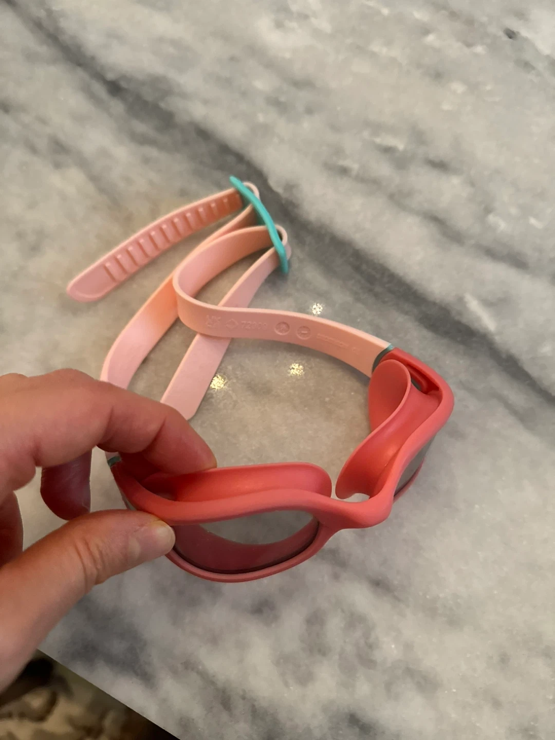 Selling a pair of Nabaiji swimming goggles in pink and teal. They're in great shape and ready for your next swim!