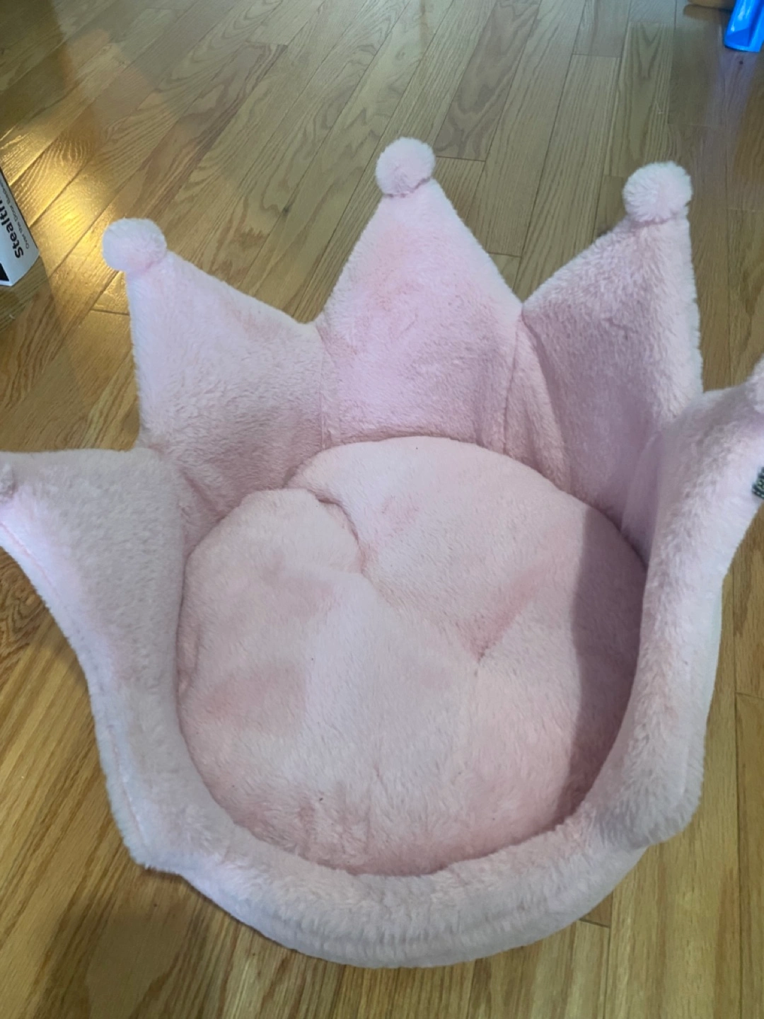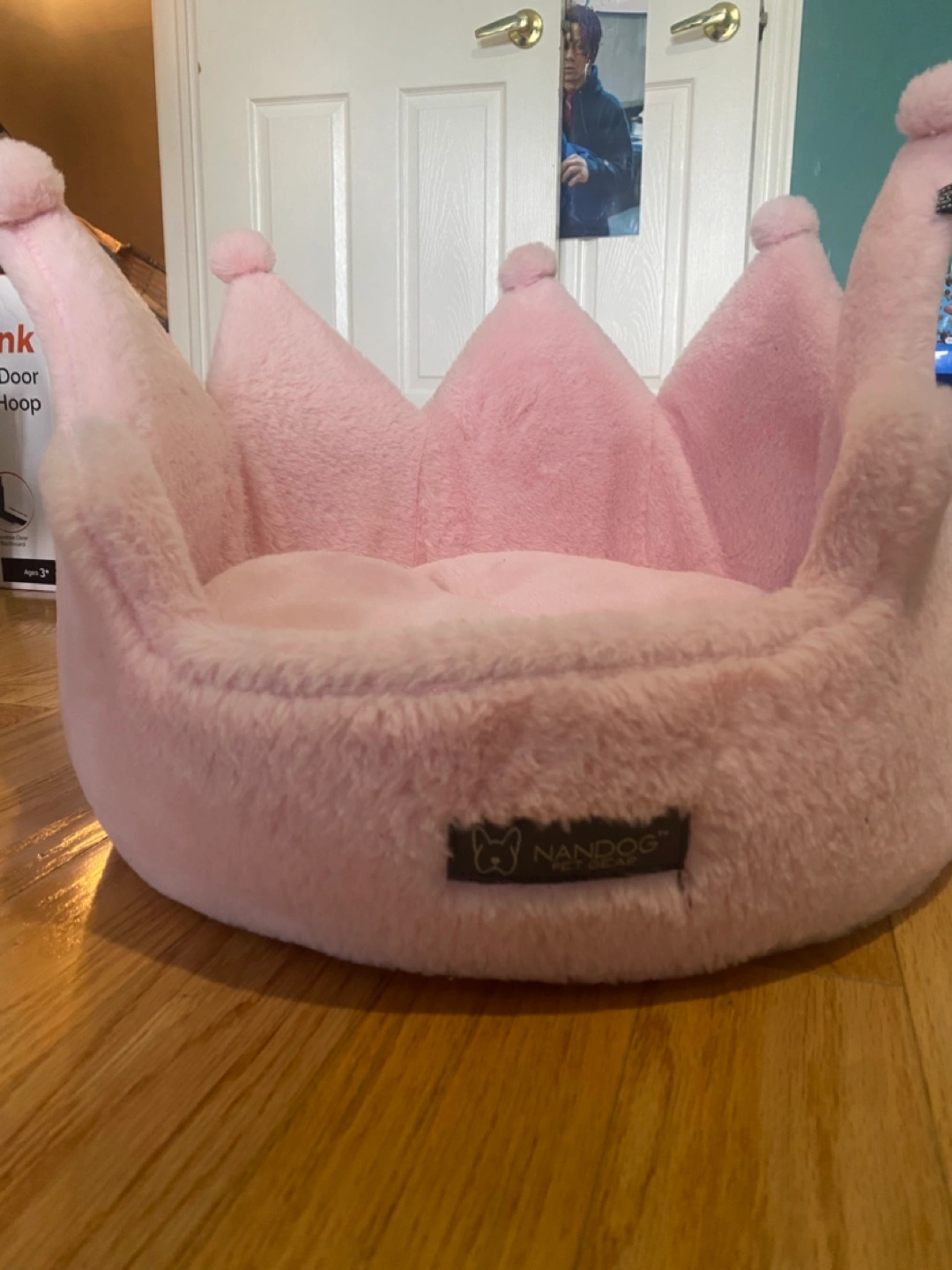 Selling a super cute Nandog pet bed shaped like a crown! It's pink and fuzzy, perfect for your little prince or princess. The bed is in great condition and ready for a new home!