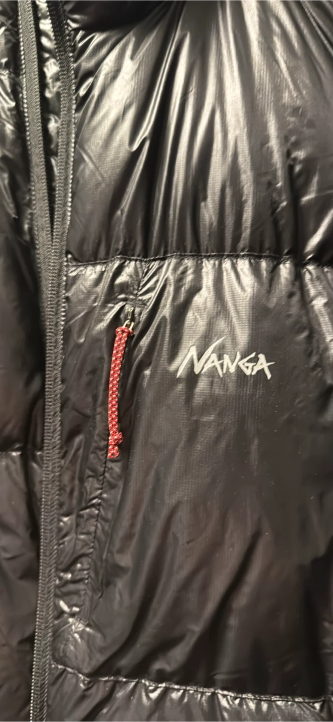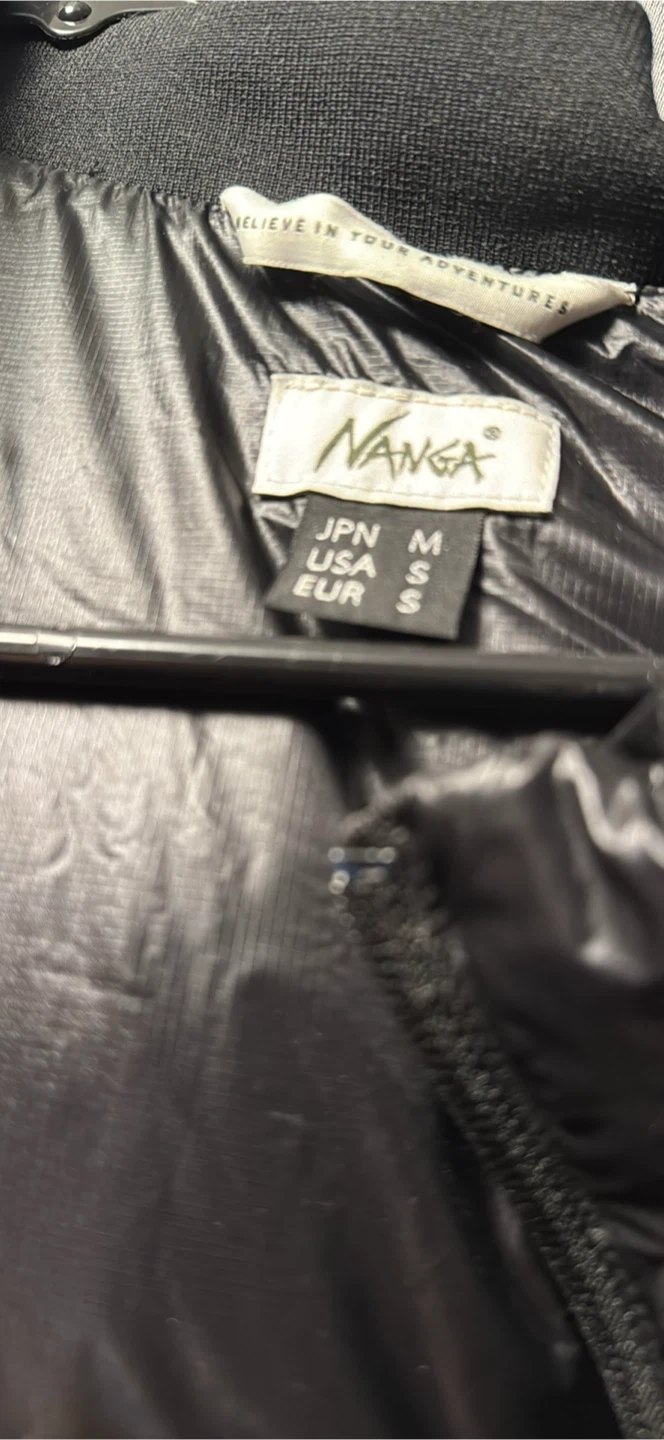 Selling a NANGA black down puffer jacket in size small. It's in great condition and ready to keep you warm this winter! The jacket features a sleek design and high-quality materials.