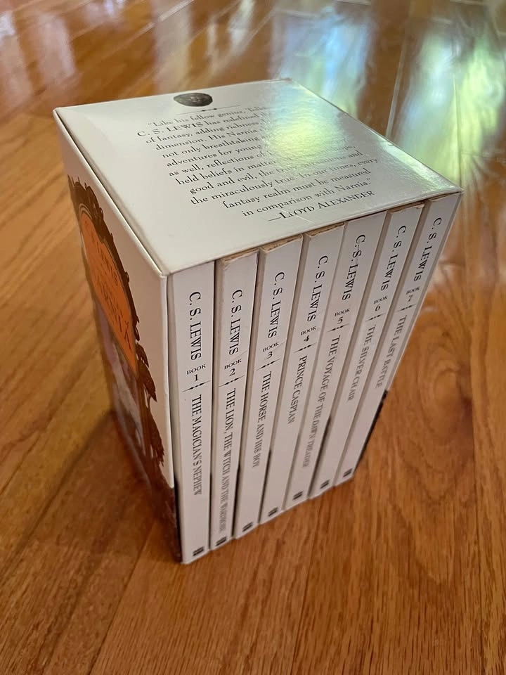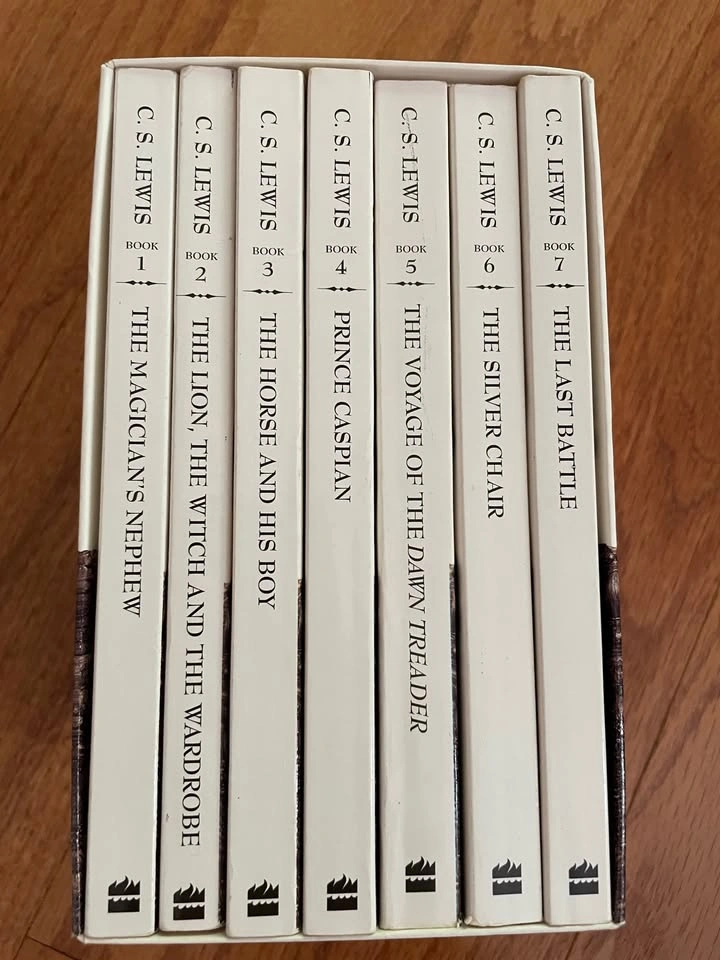 The Lion, The Witch And The Wardrobe, Prince Caspian, The Voyage Of The “Dawn Treader”, The Silver chair, The Horse And His Boy, The Magicians Nephew, The Last Battle The Vintage 7-Book Box Set of "The Chronicles of Narnia" by C.S. Lewis from the 1970s is a cherished collection for fans of fantasy and adventure novels. With titles like "The Lion, The Witch and The Wardrobe," "The Alchemist's Nephew," and "The Voyage of the 'Dawn Treader'," this box set is a timeless treasure for young adults and adults alike. This edition of the classic series is a valuable addition to any book lover's collection, offering a captivating narrative and unforgettable characters in a nostalgic 1970s format. Books are vintage, but in great shape with minimal wear. Have been in the case for many years untouched. Please see pictures.