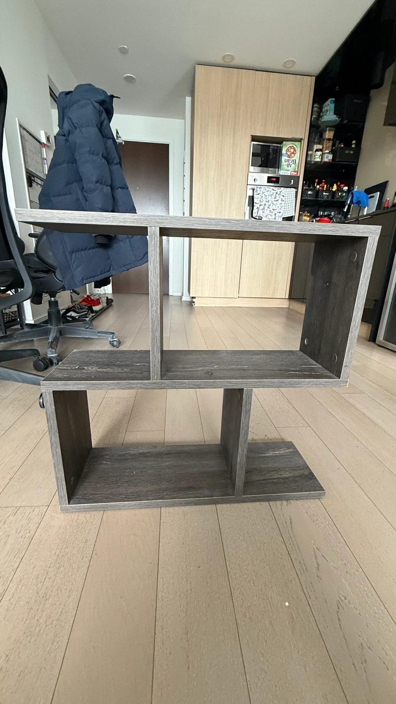 For sale: 6-month-old narrow shelf table. Crafted from textured wood, this table is the perfect addition to a narrow space or a child's room. It's sturdy, well-maintained, and in excellent condition with no scratches or signs of wear. I live in a smoke-free, child-free, and pet-free home. Dimensions: 24" (H) x 24" (L) x 8" (W) Pick-up only in downtown Toronto.