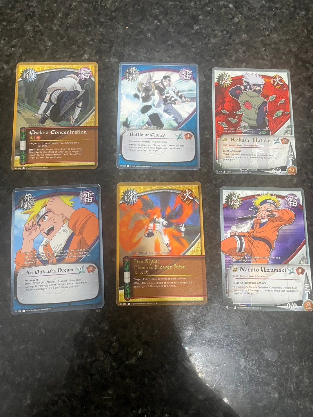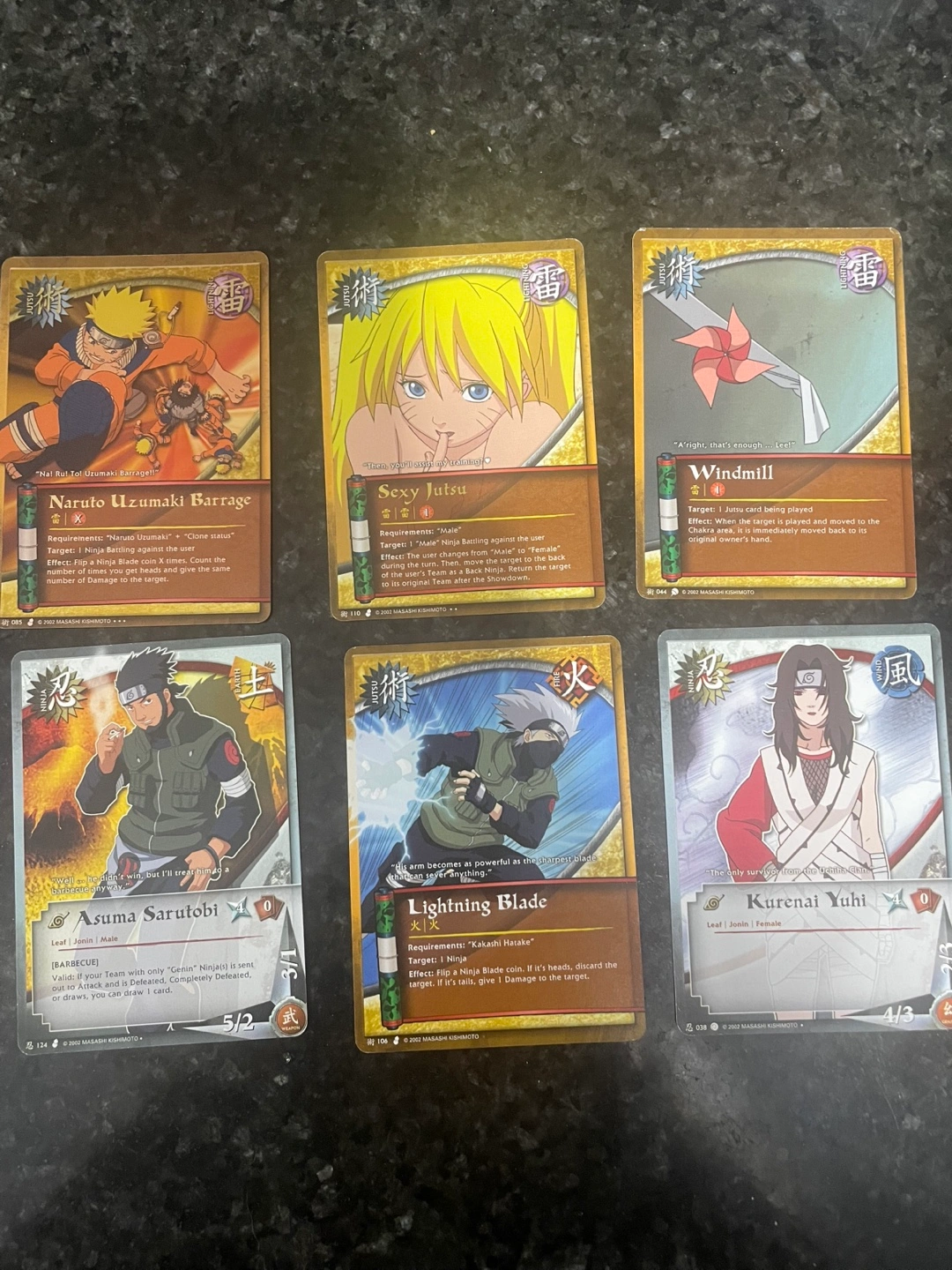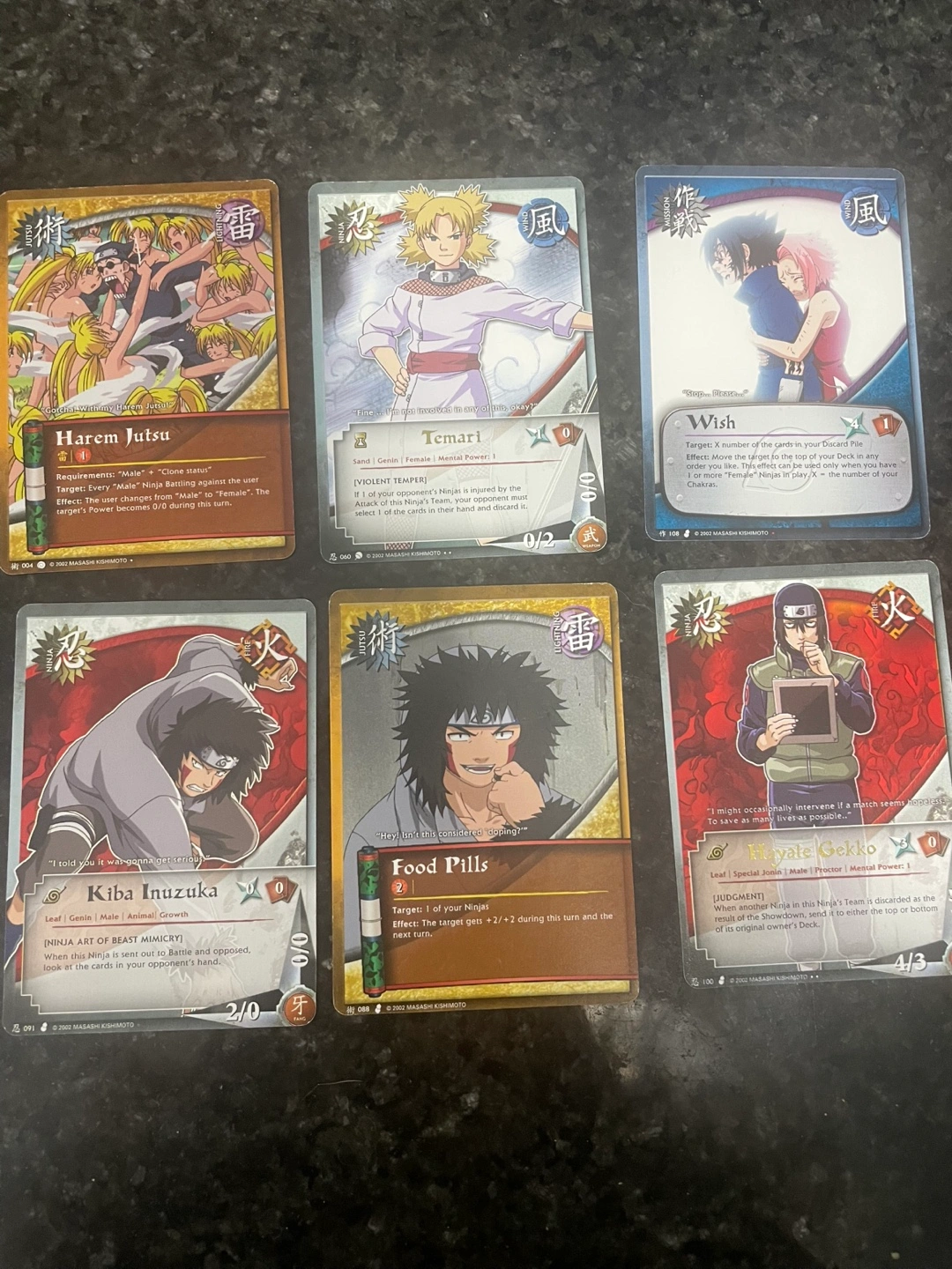 These trading cards feature various characters from the Naruto anime. They each have different abilities and stats. A great way to enjoy your favourite characters from the show. Asking $60 obo for the whole lot. Negotiable on price . Pick up in Chapelle .