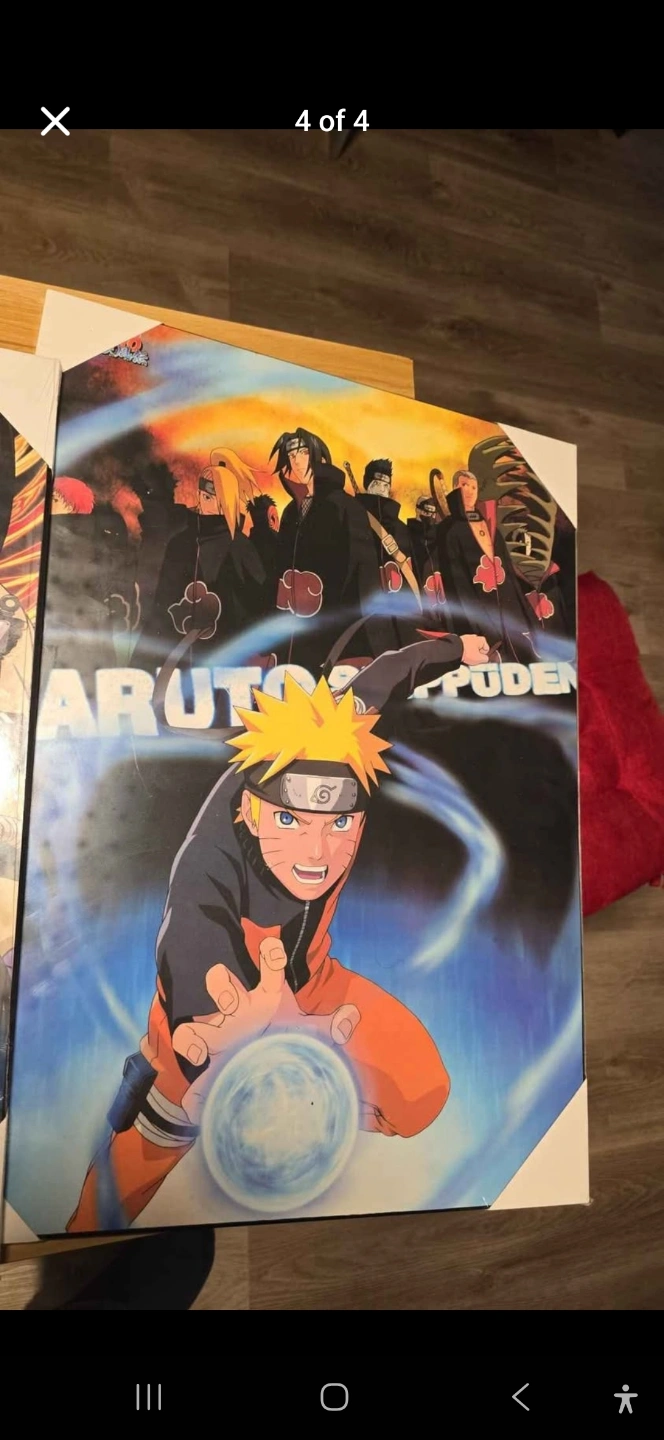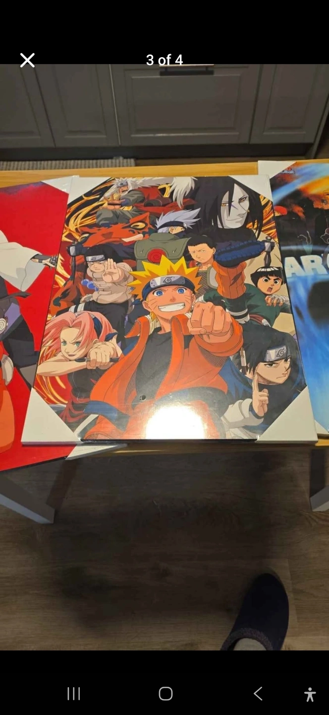 A set of framed Naruto posters featuring character art. Showcases iconic imagery from the Naruto series. A lovely addition to your space, offering a sense of peace and a personal touch. for further questions message me pick up spot Dundas West station