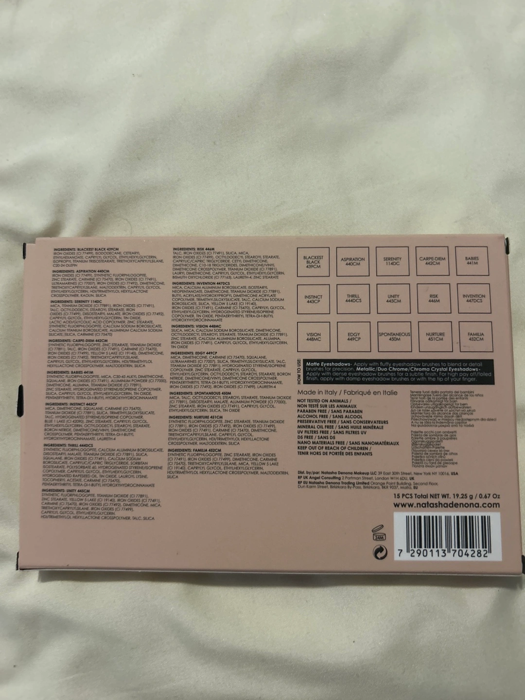 Gorgeous eyeshadow palette. 15 shades. New! Shades include blackest black, aspiration, serenity, carpe diem, babies, instinct, thrill, unity, risk, invention, vision, eday, spontaneous, nurture, familia. Cash at time of pick up from Mississauga Price is fixed at $80