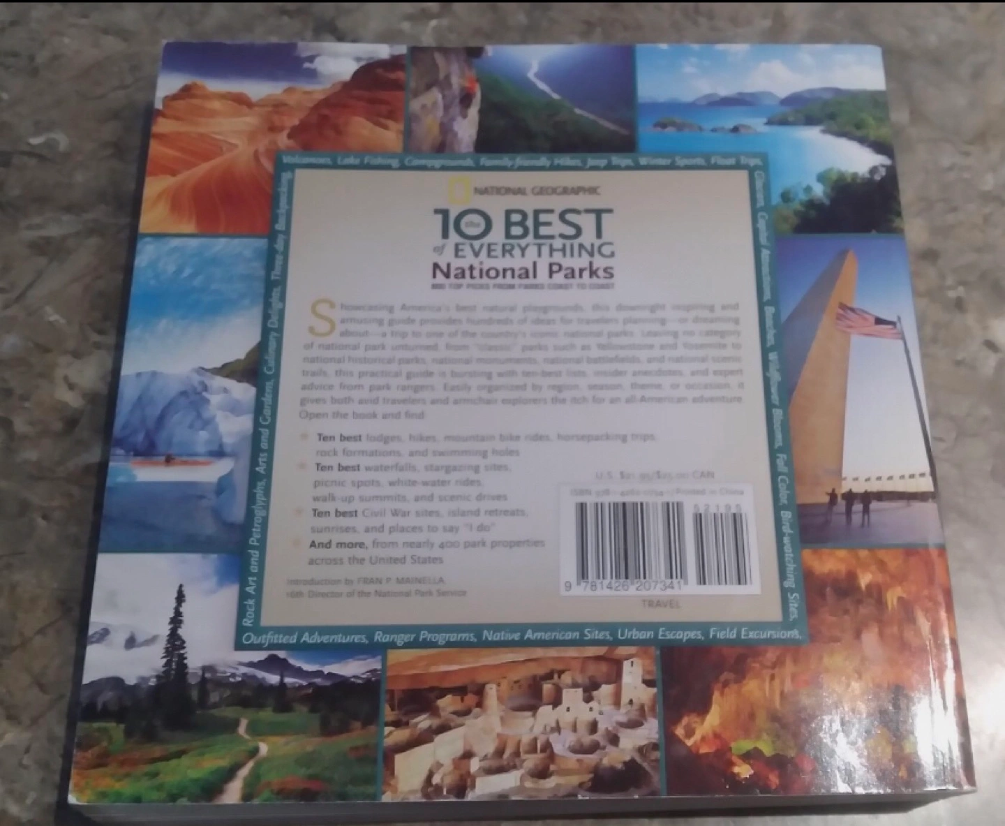 Selling a National Geographic book titled "10 Best of Everything National Parks". It's a guide featuring 800 top picks from parks coast to coast, showcasing America's best natural playgrounds. Great for travellers and armchair explorers alike, offering insights into national parks, categorized by region, season, theme, or occasion
