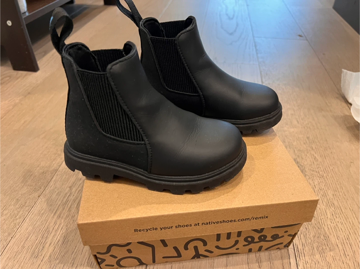 These Native Chelsea boots are in great condition and ready for a new home! They are a stylish black colour and size 7. The box is not included