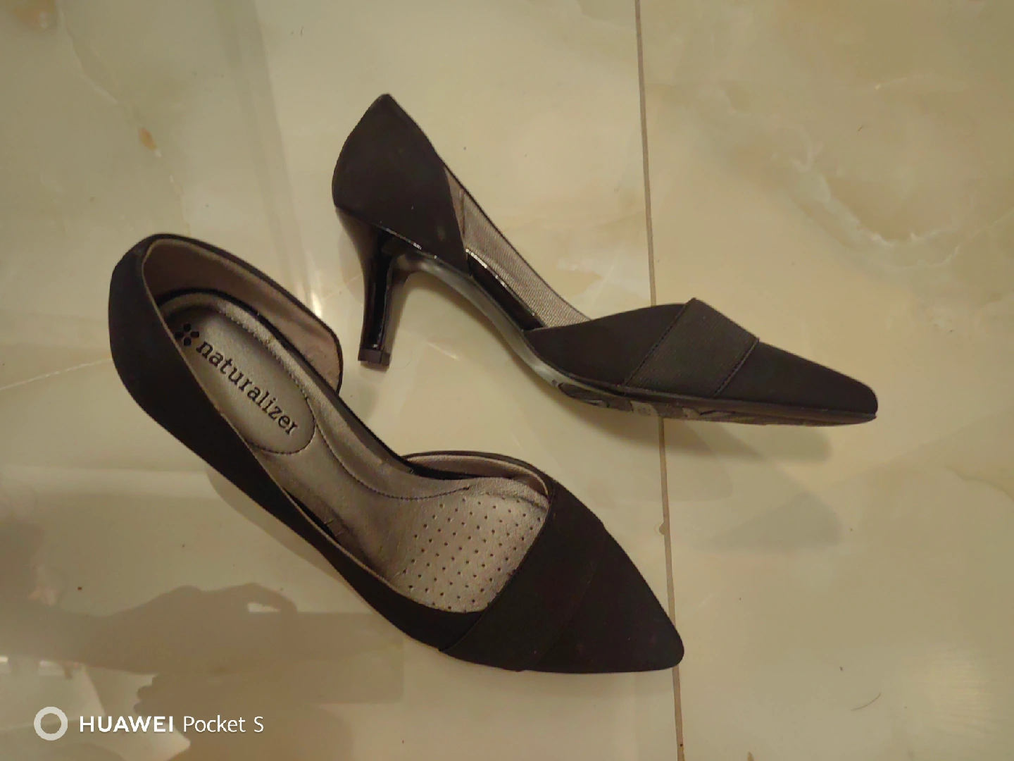 Selling a pair of Naturalizer black heels in size 8.5. They feature a sleek design and are in great condition. These heels are perfect for a night out or a special occasion