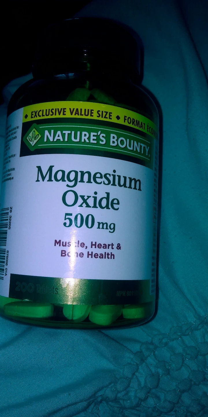 Show all200 tablets of Nature's Bounty Magnesium Oxide 500mg. Supports muscle, heart & bone health. Expiry date 09/2026.