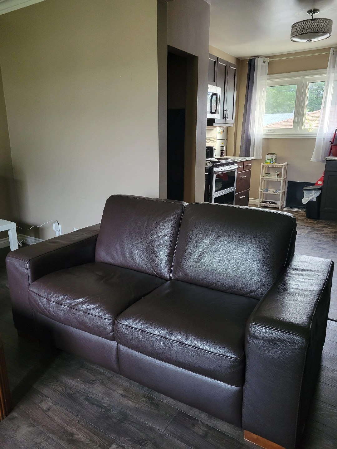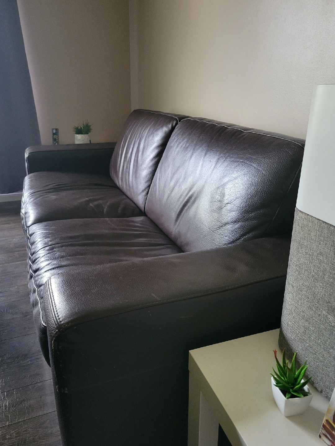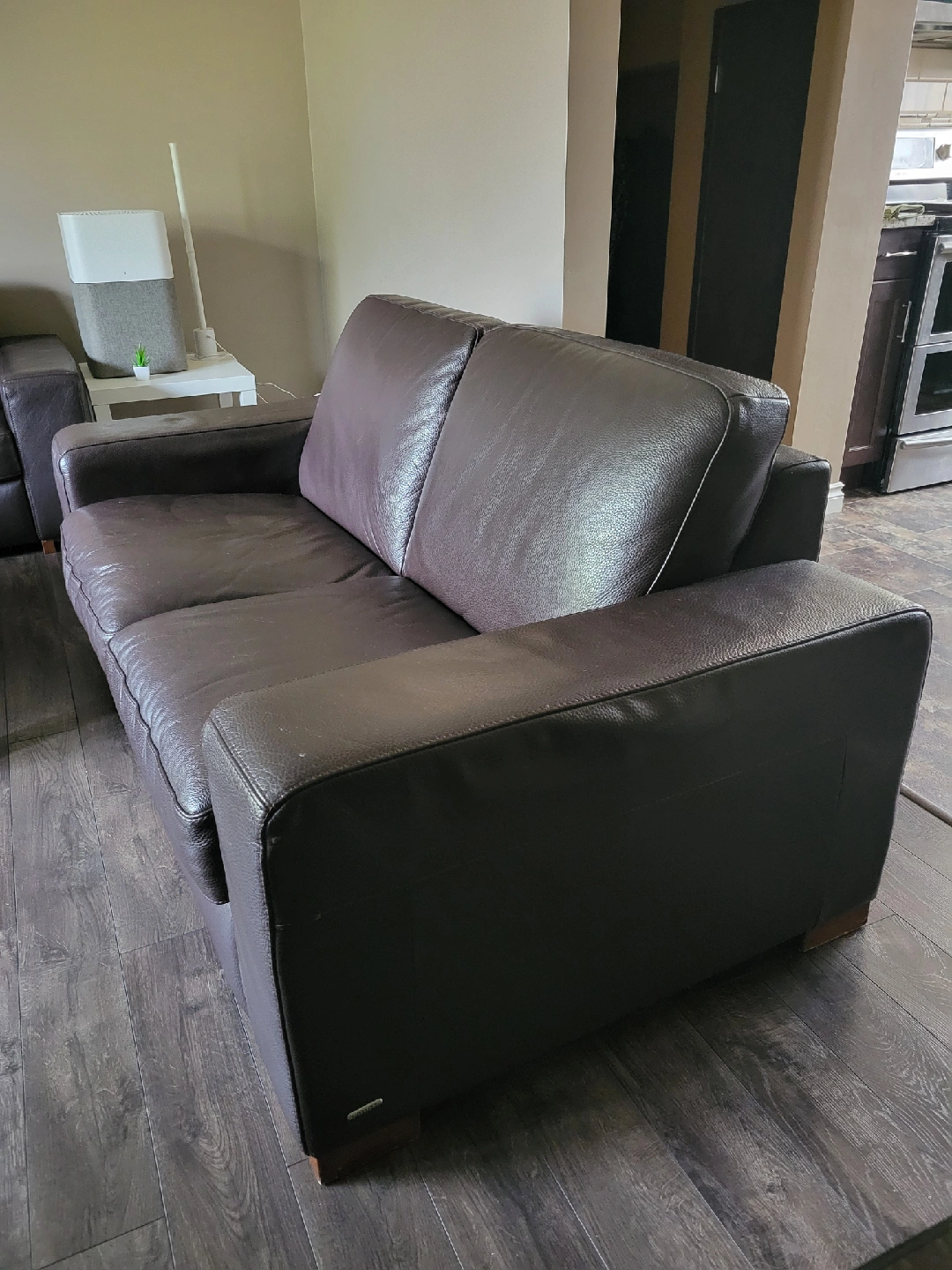 Selling 2 Natuzzi brown leather sofas. It's in good condition and has a classic look that would fit well in any living room. The leather is soft and comfortable, perfect for relaxing after a long day!