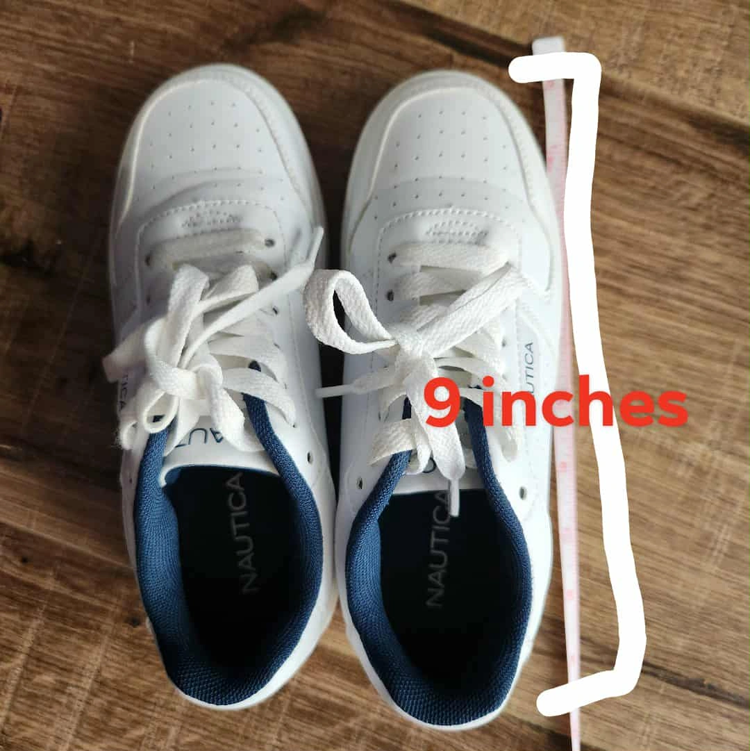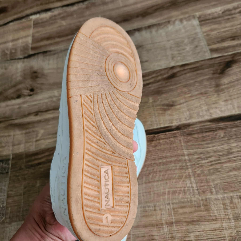 Selling a pair of white Nautica sneakers! They are in great condition and measure about 9 inches in length. Perfect for everyday wear!