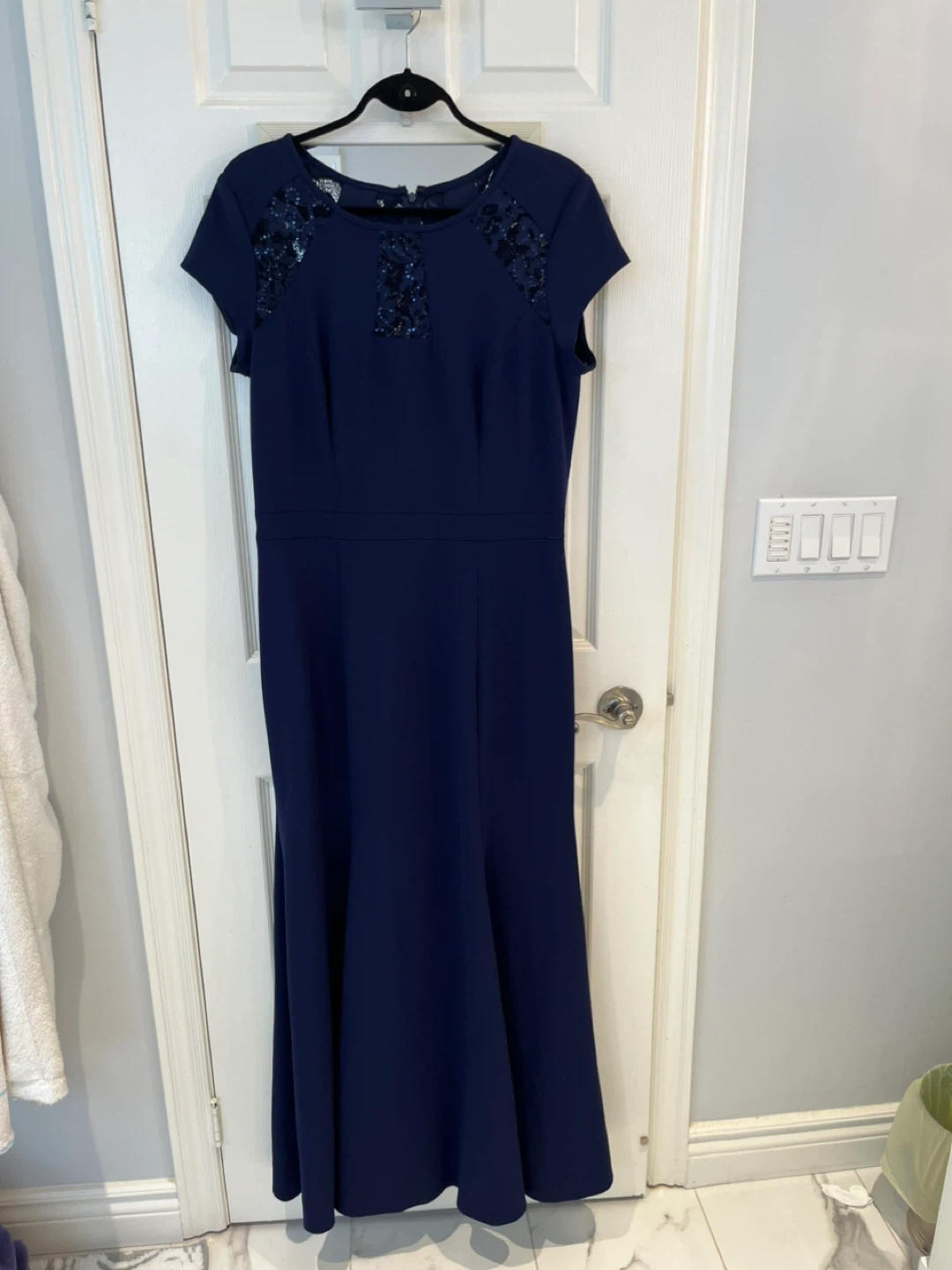 Selling a lovely Alex Evenings dress in a beautiful navy blue colour! It's a size 14 and features elegant lace detailing on the bodice. Cash only Bathurst and steeles pick up
