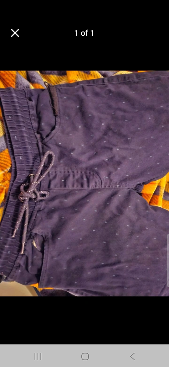 I'm selling these navy blue shorts. They feature a drawstring and a subtle pattern. Great for casual wear! Just 2 Dollars. Call or message at 6474729322 for pickup.