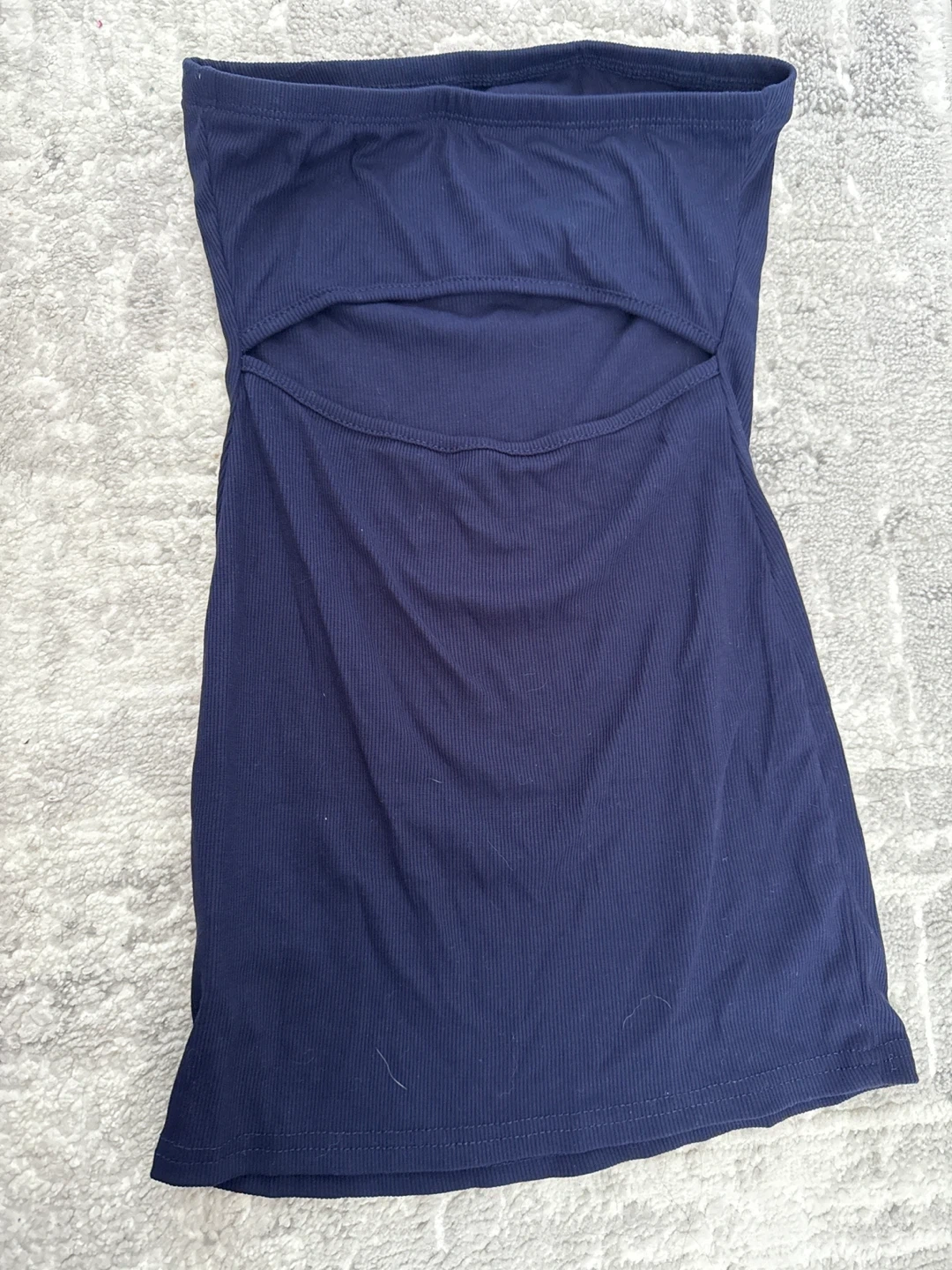 Here's a cute navy blue tube top dress! It has a stylish cutout detail in the front. Perfect for a casual day out or dressing up for a night out on the town