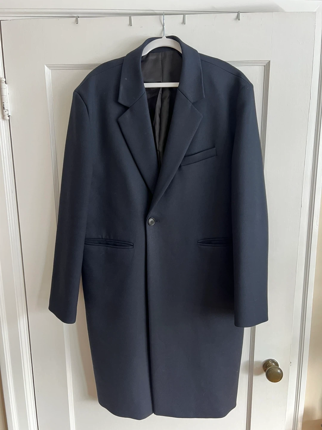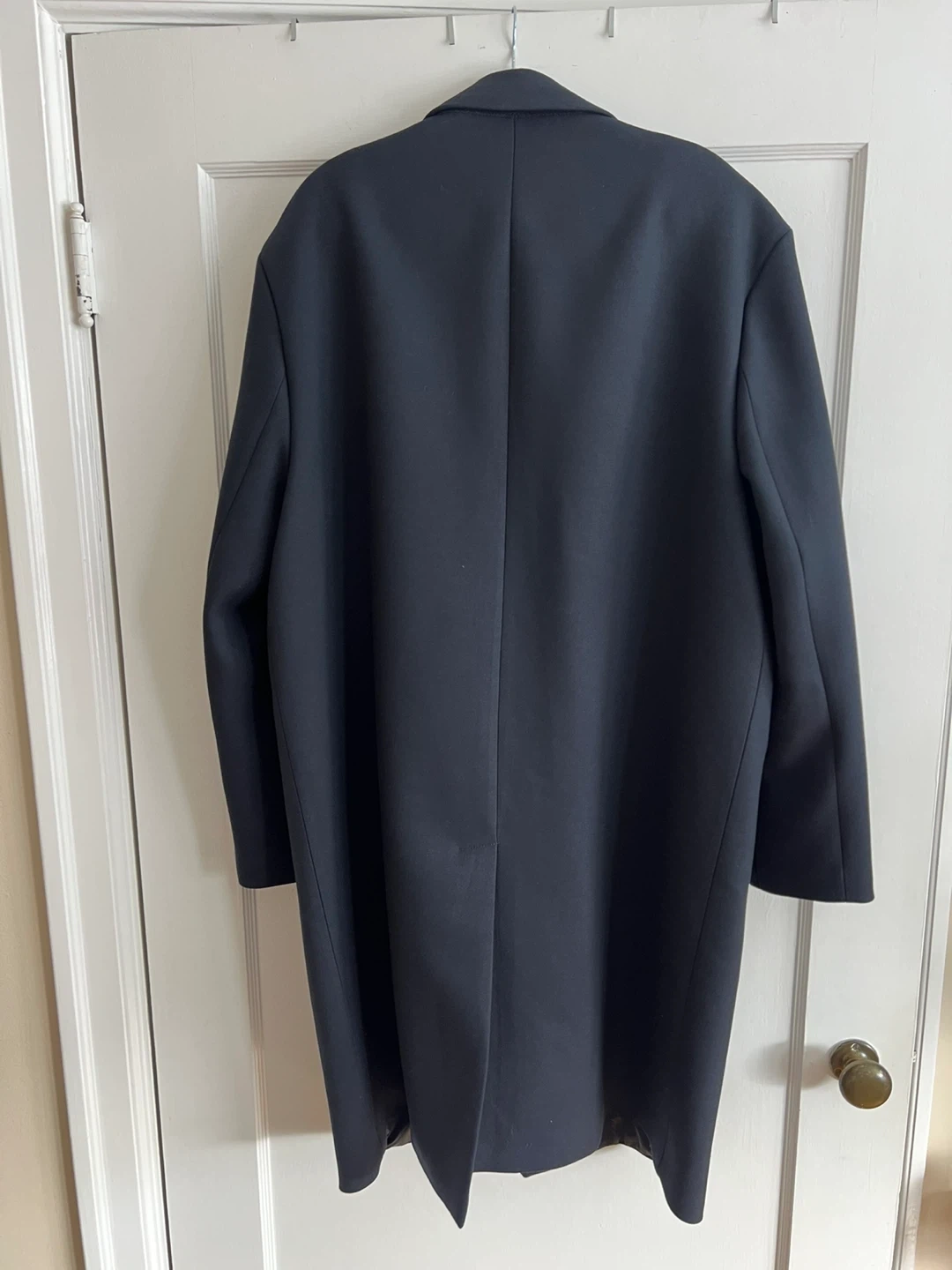 Selling a stylish navy blue coat! It's a wool blend, perfect for staying warm and looking sharp. It is in great condition and ready for a new home. A versatile piece for your wardrobe!