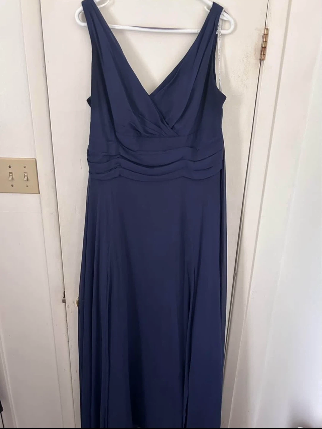 WaNavy David’s bridal bridesmaid dress. Size 16 fits true to size(not altered) Long and flowy/ has slit in one leg for air flow/ sash to tie at waist/ zip back. $100 p/u Penetanguishene or can drop off reasonable distance.