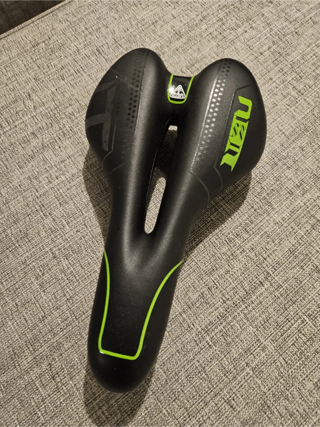 Selling a Nazu bike seat in black with green accents. It's in great shape and ready to be installed on your bicycle. It measures approximately 10 inches in length.