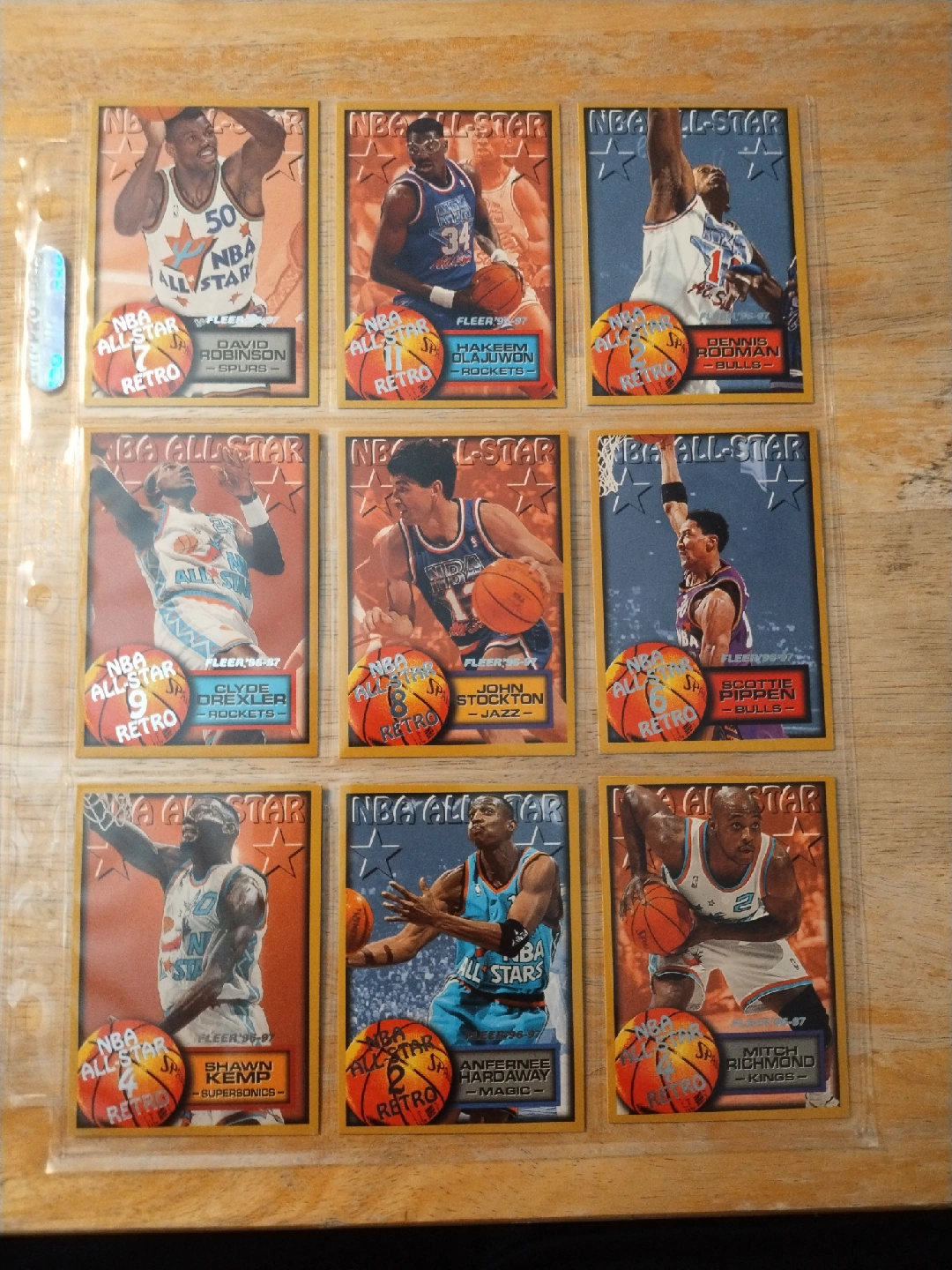 Selling a set of NBA All-Star trading cards from Fleer's 1996-97 Retro series. Each card features a different player in their All-Star jersey. Great for any basketball card collector!