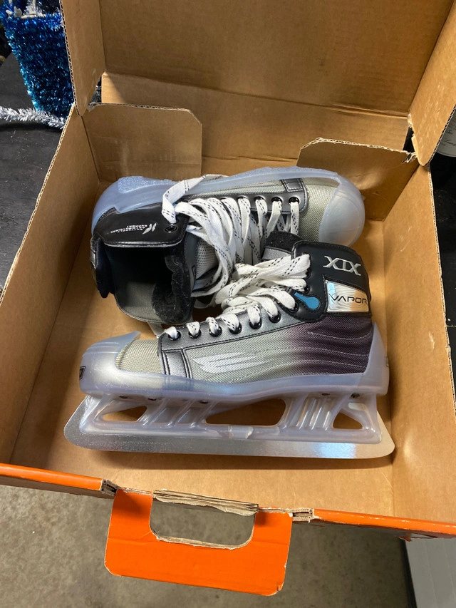 Women’s goalie skates new in box Bauer vapor XIX goal skate sr. New in box Condition: New Type: Hockey Skates For Sale By: Owner