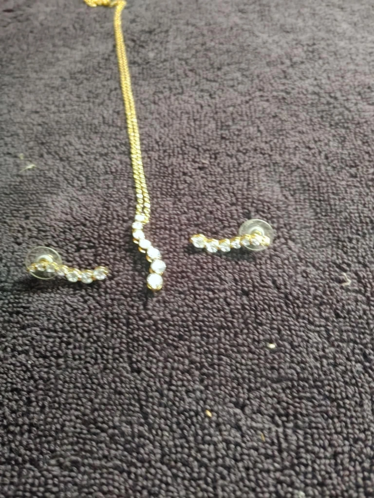 Selling a cute necklace and earring set! The set is gold with clear stones. Perfect for dressing up or adding a little sparkle to your everyday look