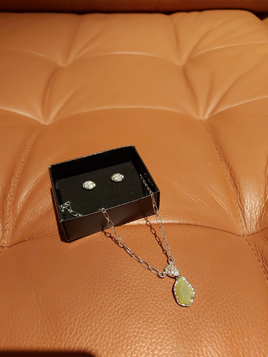 A lovely necklace and earring set! The set comes in a box and is in great condition. The necklace features a unique pendant.