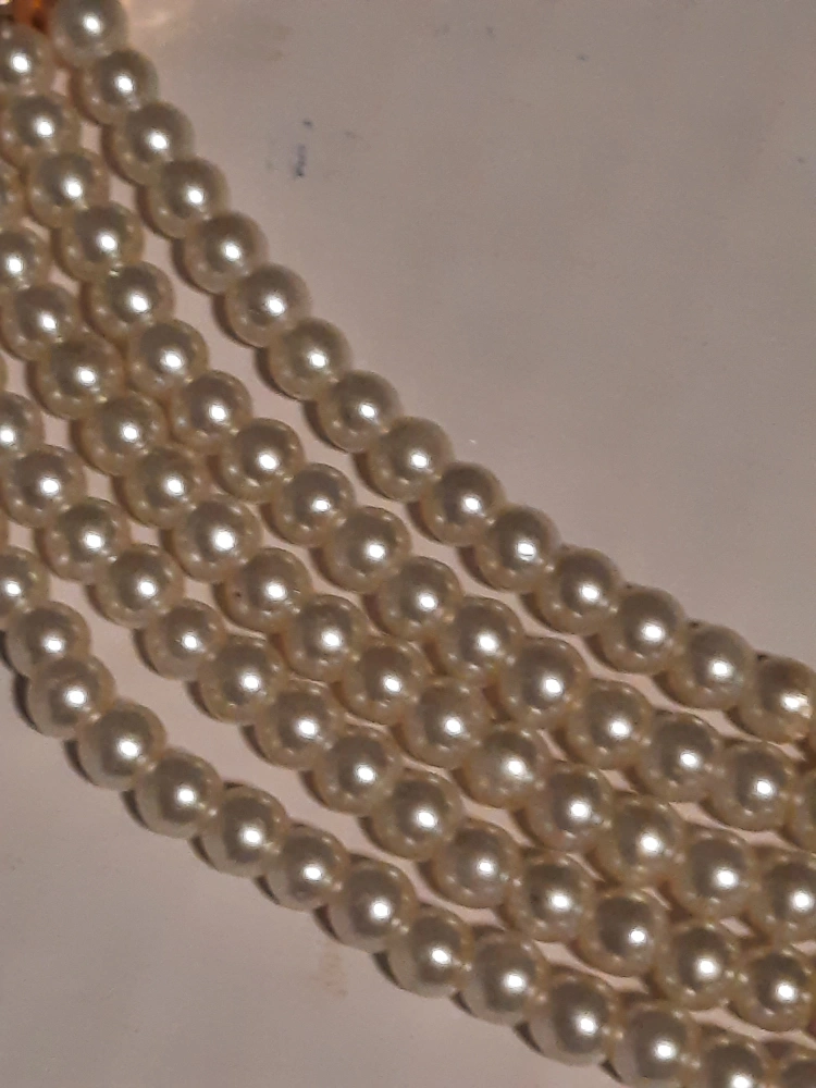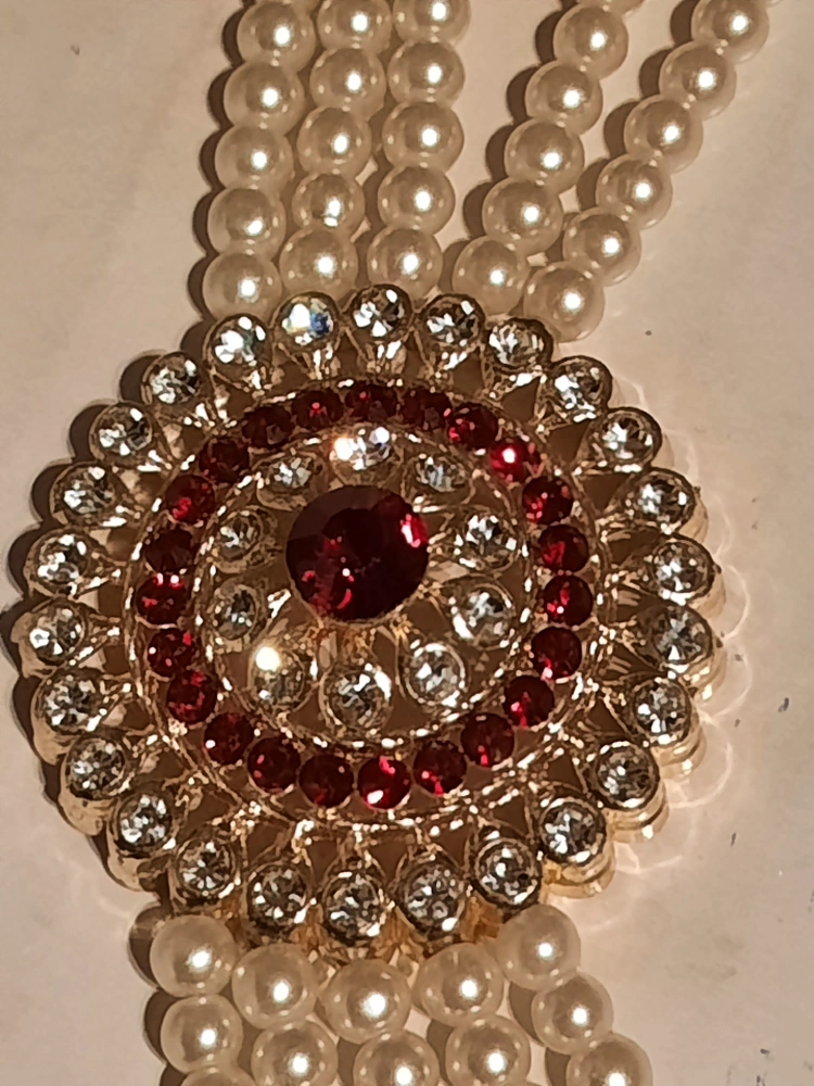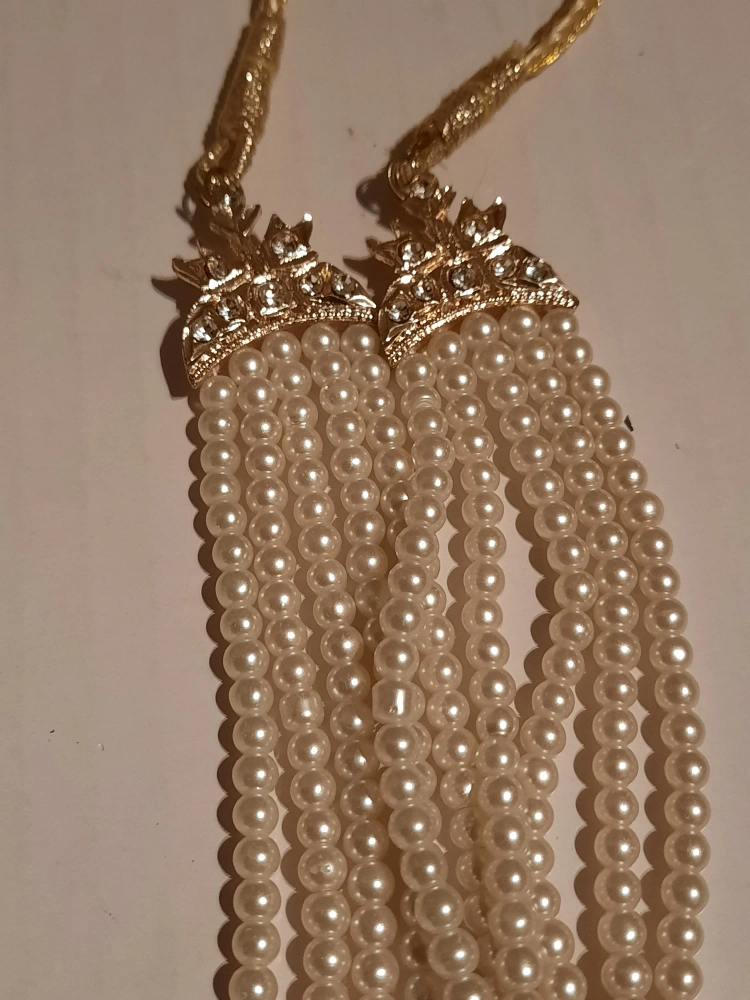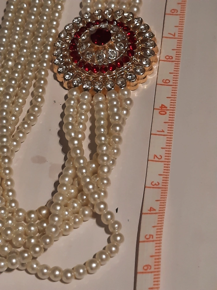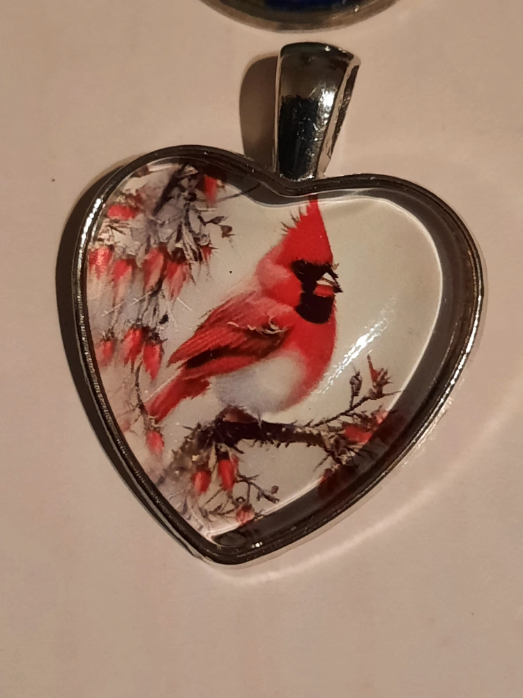 Selling a necklace with multiple pendants. The necklace is a multi-strand pearl design with a gold-coloured rope accent. The pendants include a cardinal, a butterfly with a Canadian flag, and other decorative designs. A unique collection to add to your jewellery box!