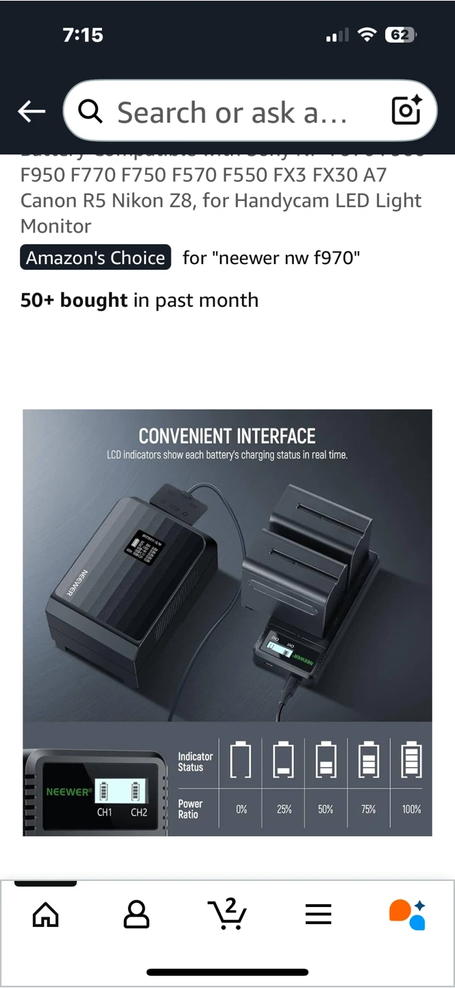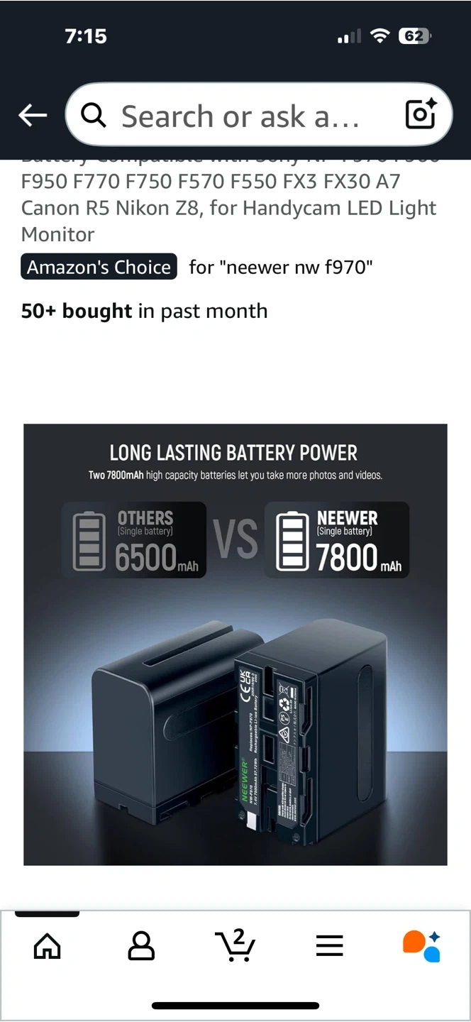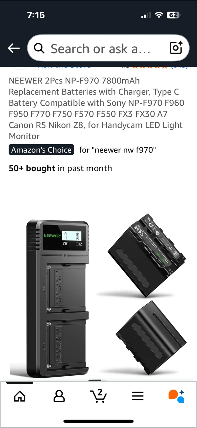 Show allNeewer 2pack NP-F550 Replacement Battery