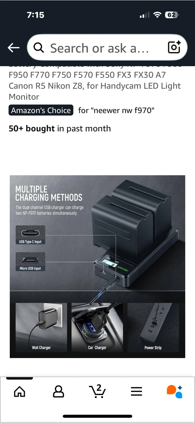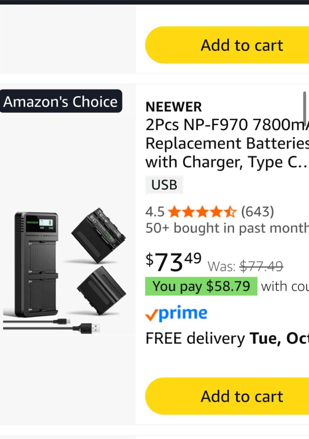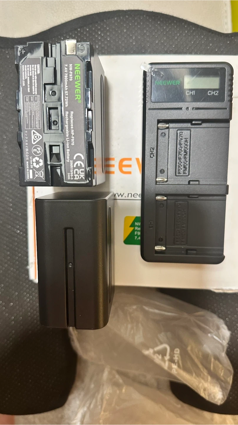 Selling a set of NEEWER NP-F970 batteries and charger. These are 7800mAh replacement batteries. They are compatible with Sony NP-F970, NP-F960, F950, F770, F750, F570, F550, FX3, FX30, A7, Canon R5, Nikon Z8, for Handycam LED Light Monitor. Charger is Type C USB.